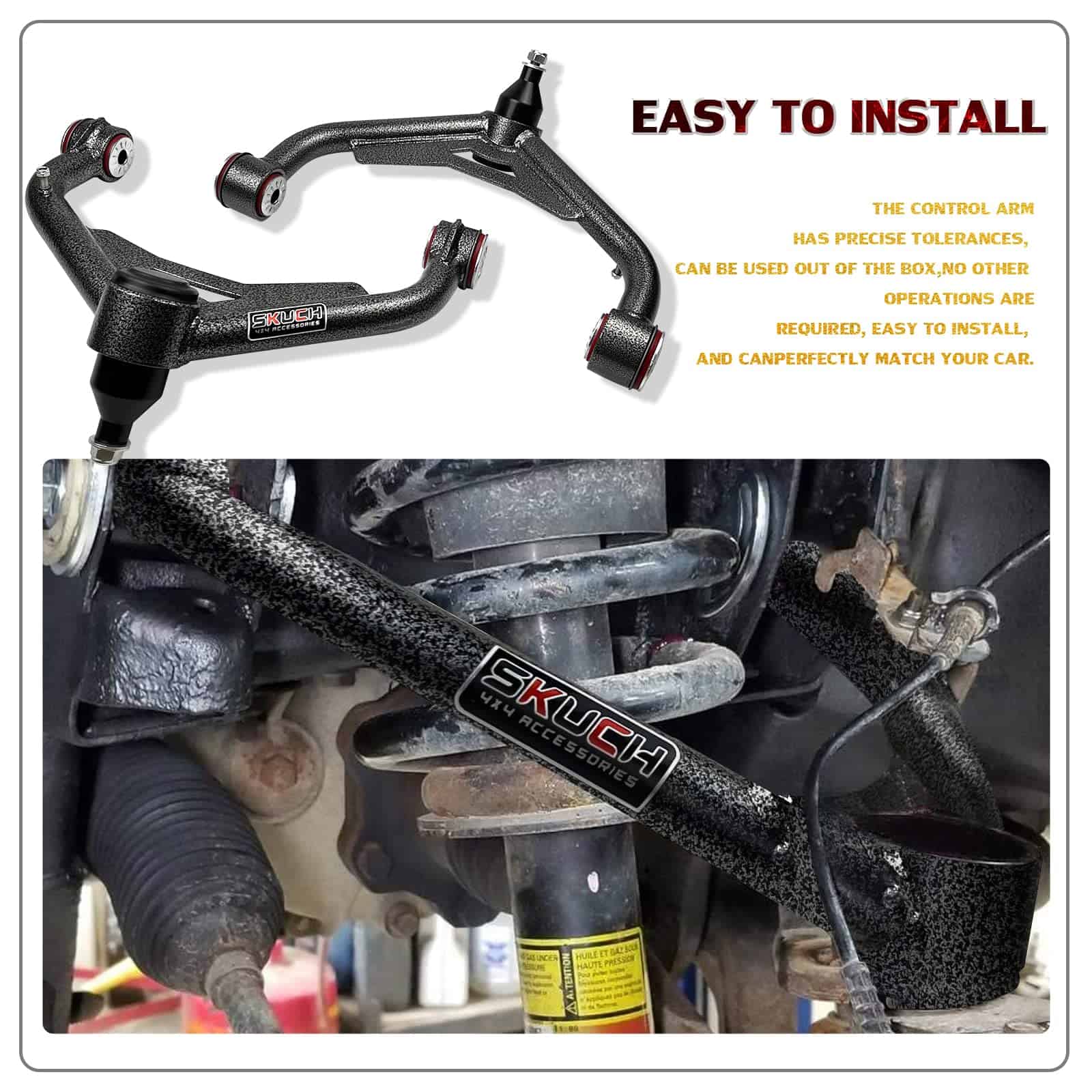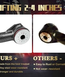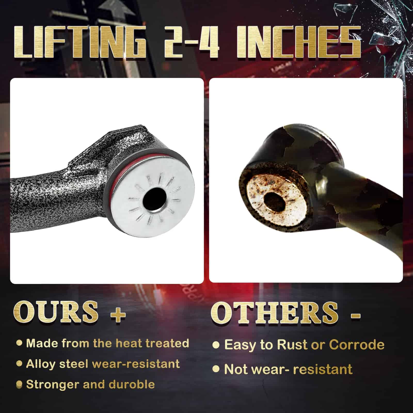 Reemplaza los brazos de control originales para elevar el vehículo 2-4 pulgadas en modelos Silverado 2500HD 3500HD 2000-2010 y GM Sierra 2500HD 3500HD 2000-2010. Fácil instalación sin necesidad de taladrar ni cortar. Hecho de acero de alta resistencia con montaje sólido, revestimiento anticorrosión y buje de PU para mayor durabilidad. Incluye cubierta protectora para prevenir la entrada de suciedad en la articulación de la bola y prolongar la vida útil. Los brazos de control superiores mejorados garantizan una conducción segura y suave en todo tipo de condiciones climáticas.
