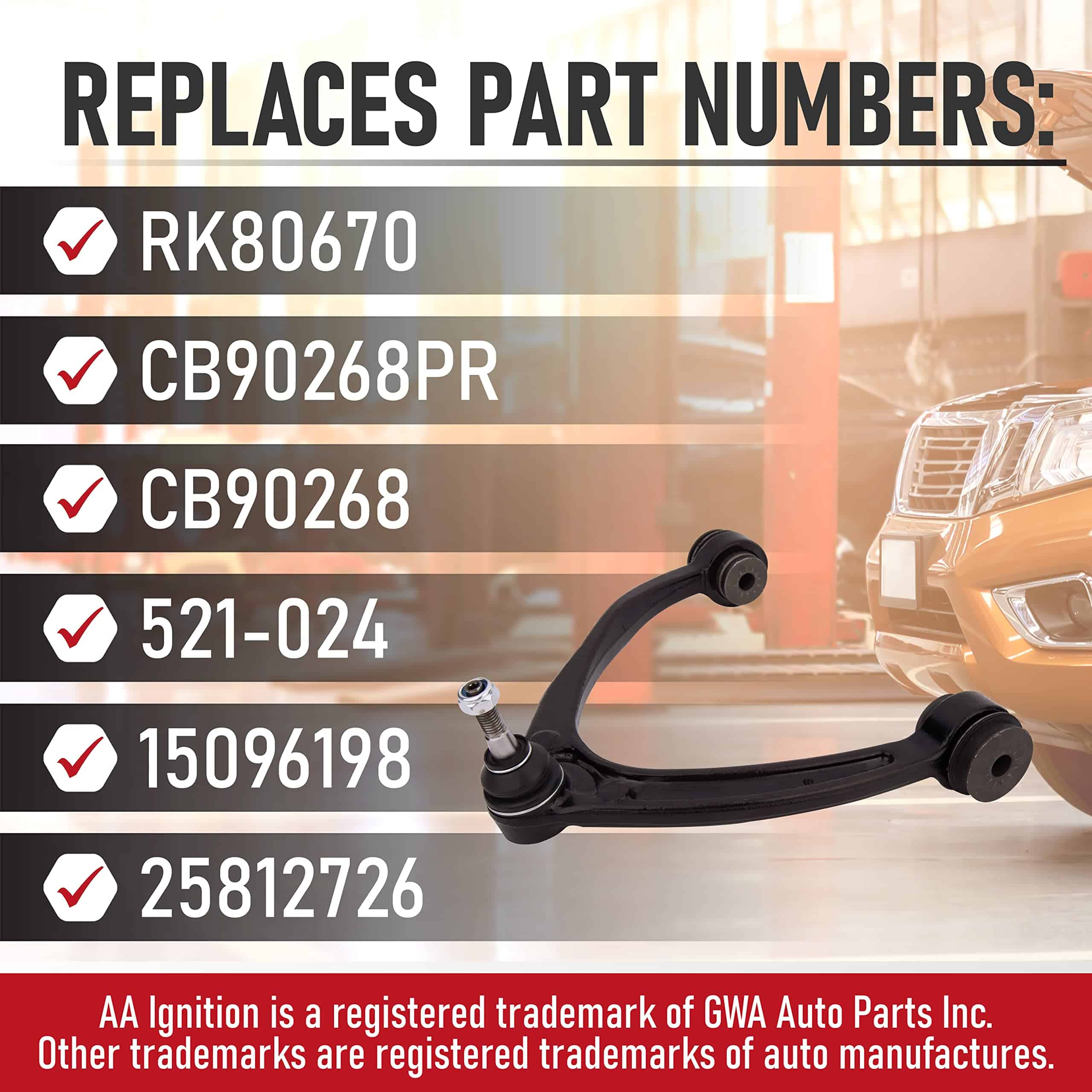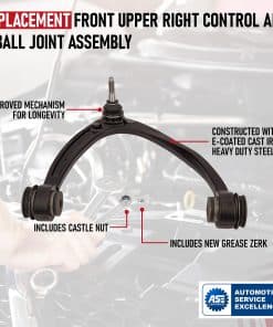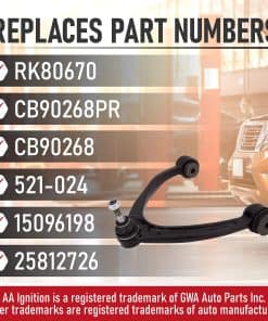 Brazo de control superior delantero derecho de repuesto y ensamblaje de junta esférica compatible con vehículos Cadillac, Chevrolet y GMC – 2007, 2008, 2009, 2010, 2011, 2012, 2013, 2014, 2015, 2016 Escalade, Escalade ESV | 2007-2013 Escalade EXT | 2007-2013 Avalanche | 2007-2016 Silverado 1500 | 2007-2014 Suburban 1500 | 2007-2016 Tahoe | 2007-2016 Sierra 1500 | 2007-2016 Yukon | 2007-2014 Yukon XL 1500 |. Reemplaza las piezas RK80670, CB90268PR, CB90268, 521-024, 15096198, 25812726 comúnmente encontradas en Escalade ESV, Escalade EXT, Silverado 1500, Sierra 1500, Yukon, Yukon XL, incluyendo los años 07, 08, 09, 10, 11, 12, 13, 14, 15, 16. Si experimenta ruidos de golpeteo desde la suspensión delantera, vibraciones excesivas en la parte delantera del vehículo, es posible que tenga un brazo de control malo o que falle. Este kit incluye una tuerca de castillo, boquilla de grasa y tapa antipolvo para un reemplazo completo y adecuado y las juntas esféricas se pueden acceder quitando algunas partes después de quitar las ruedas delanteras. Por favor, tenga en cuenta que la alineación debe realizarse después de la instalación para un correcto funcionamiento del vehículo. Este kit de brazo de control superior derecho con junta esférica viene completo con una garantía. Si la pieza falla en su Escalade 08, Silverado 1500 13, Suburban 1500 13, Sierra 1500 15 4WD / RWD, Yukon 11 o Yukon XL 1500 08, simplemente contáctenos para un reemplazo. Ahorre tiempo y dinero frente a los precios de concesionarios comprando esta pieza y aprovechando nuestra garantía.