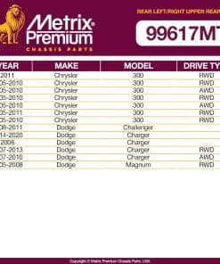 Brazo de control trasero superior trasero izquierdo y derecho Metrix Premium RK641520 & RK641519 para Chrysler 300 RWD 05-11, 300 AWD 05-10, Dodge Challenger 08-11, Charger 14-20, Charger RWD 07-13, Charger AWD 07-10. Ingresa una descripción más detallada sobre la calidad premium y confiable del producto, garantizando resistencia, durabilidad y fácil instalación. Cumple con los estándares de calidad OEM y está respaldado por una garantía limitada de 3 años / 36,000 millas.