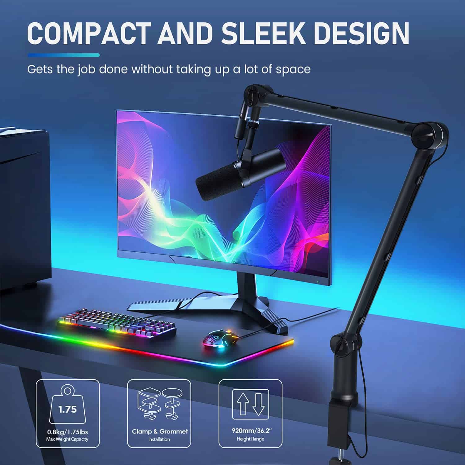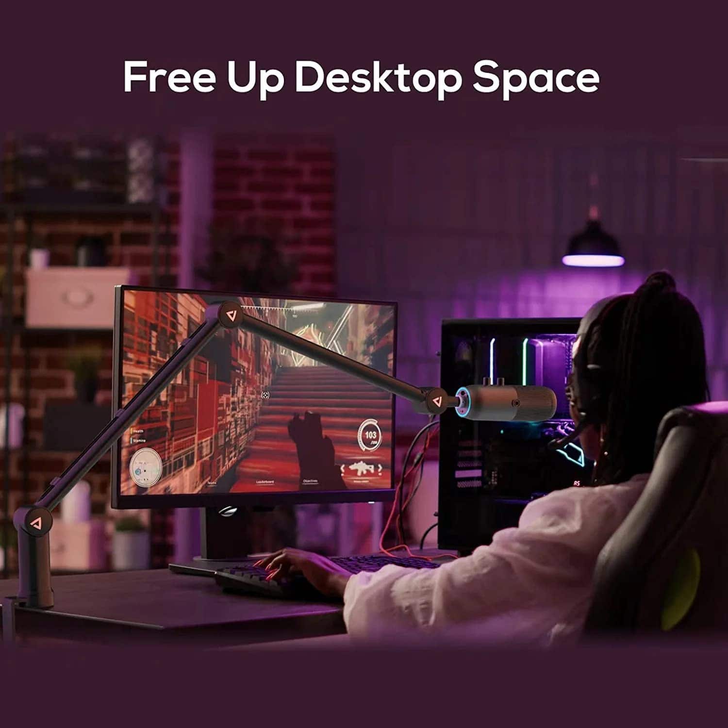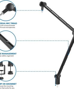 1. Posicionamiento perfecto: alcance la altura y el ángulo ideales para su configuración con el brazo de micrófono Thronmax. Nuestros perillas ajustables facilitan la personalización de su espacio de trabajo y garantizan comodidad al obtener el sonido perfecto. 2. Compatibilidad universal: diseñado para adaptarse a todos los micrófonos estándar, este versátil brazo de micrófono es imprescindible para podcasters, streamers y actores de voz por igual y le brinda sonido de calidad de estudio en su escritorio. 3. Configuración rápida y sin esfuerzo: este soporte de micrófono de escritorio se puede ensamblar e instalar fácilmente en cuestión de minutos. Su construcción robusta, fabricada en acero de grado aeronáutico, garantiza una configuración resistente que permanecerá firmemente en su lugar. 4. Espacio de trabajo ordenado y limpio: mantenga su escritorio ordenado y organizado pasando todos sus cables por un canal. La cabeza de bola de este brazo de micrófono permite una posición precisa de su micrófono, mientras que el espacio libre óptimo en el escritorio garantiza un fácil acceso a su configuración. 5. Perfecto para estudio en casa u oficina: ya sea que esté transmitiendo, transmitiendo y trabajando desde casa, este soporte de brazo de micrófono de escritorio es perfecto para sus necesidades de audio. ¡Disfrute de la libertad para moverse manteniendo una configuración de audio profesional y de alta calidad!