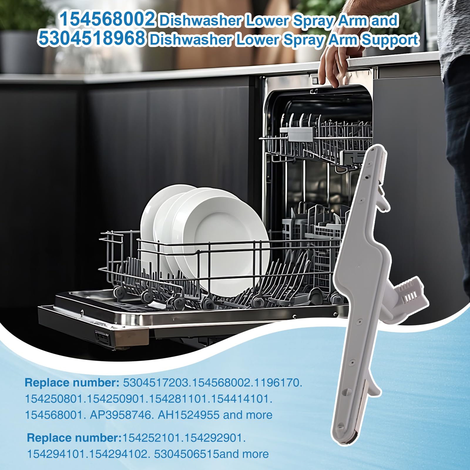 4. El empaque incluye 1x soporte de brazo de lavado inferior del lavaplatos 5304518968 y 1x brazo de lavado inferior 154568002, compatibles con Frigidaire, Gibson, Kenmore, Kelvinator, Tappan, Uni, Westinghouse, Crosley.