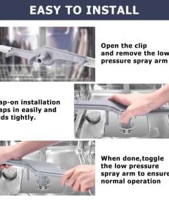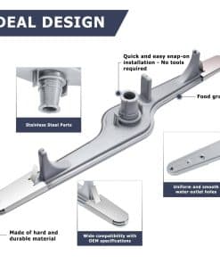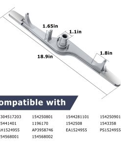 Brazo rociador inferior para lavavajillas 154568002 con protector. El 154568002 puede reemplazar los siguientes números de parte: 1191315, 154568001 ,154414102, AH1524956, AP3889833, EA1524956, PS1524956 y Dishwasher5304517203. Este brazo rociador (número de parte 154568002, 154568001, 5304517203) es para lavavajillas. El brazo rociador 154568002 rota y rocía agua para limpiar los platos dentro de la tina del lavavajillas. FÁCIL DE INSTALAR: Este es un reemplazo de mercado secundario NUEVO diseñado para adaptarse a modelos específicos de lavavajillas fabricados por Electrolux, incluidos Crosley, Frigidaire, Gibson y Kelvinator. Compatible con la mayoría de los lavavajillas, incluidos BBBD2432KB0, BBBD2432KF0, BBBD2432KW0, BGBD2432KB0, BGBD2432KF0, BGBD2432KW0, CDB350NB0A, CDB350NB10B, CDB350NB1A, CDB350NB2A, CDB350NB3A, CDB350NB4A, CDB350NB5A, CDB350NB6B, CDB350NB7B, CDB350NB8B, CDB350NB9B, CDB350NW0A. Al presentar los siguientes síntomas: Platos no se limpian adecuadamente, Fugas, Ruidoso, No drena. Puede reparar su lavavajillas reemplazando el Brazo rociador inferior para lavavajillas 154568002, es importante desconectar su electrodoméstico de la fuente de alimentación y de agua antes de dar mantenimiento.