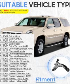 Kit de Suspensión de Brazos de Control Inferiores Delanteros Compatible con 2005-2007 Buick Allure 2008-2009 Buick Allure (24mm Bar; 15/16in Bar) 1997-2005 Buick Century 2005-2007 Buick Lacrosse 2008-2009 Buick Lacrosse (Exludes Super Models) 1997-2004 Buick Regal 2005-2006 Buick Terraza (AWD) 2005-2006 Uplander (AWD) 2000-2005 Impala (Vehículo de Flota) 2006-2013 Impala (Paquete de Policía) 2014-2016 Impala Limitado (Paquete de Policía) 2000-2007 Monte Carlo 1997-2005 Venture 1997-2004 Oldsmobile Silhouette 1998-2002 Oldsmobile Intrigue 1997-2003 Pontiac Grand Prix 2004 Pontiac Grand Prix (Barra de 34 mm) Pontiac Grand Prix (5.3L; Barra de 34 mm) 1999-2004 Pontiac Montana 2005 Pontiac Montana (3.4L) 2006 Pontiac Montana (AWD) 1997-1999 Pontiac Trans Sport 2005-2006 Saturn Relay (AWD) Kit Incluye 1x Brazo de Control Inferior Izquierdo Delantero con Junta de rótula – K80539 1x Brazo de Control Inferior Derecho Delantero con Junta de rótula – K80538