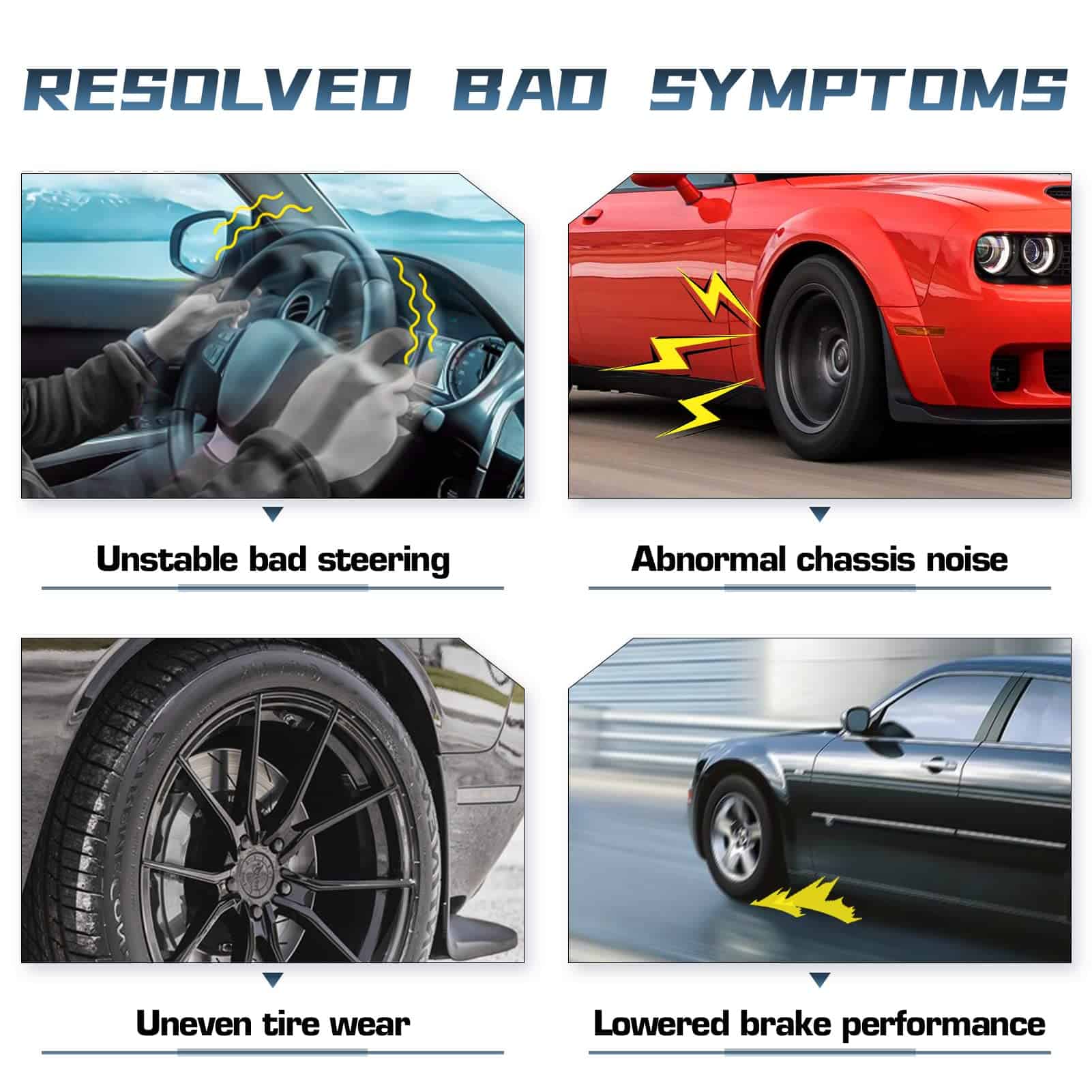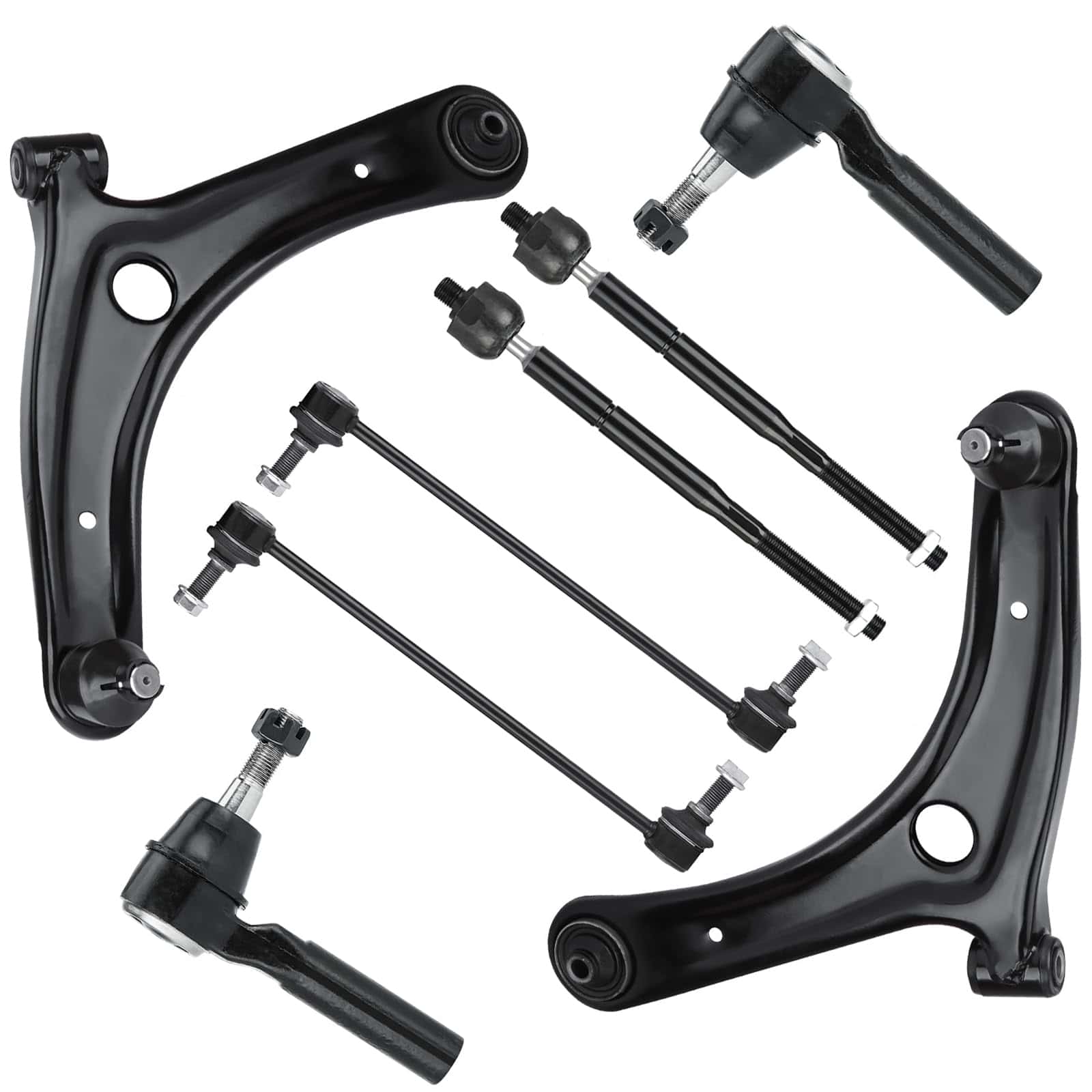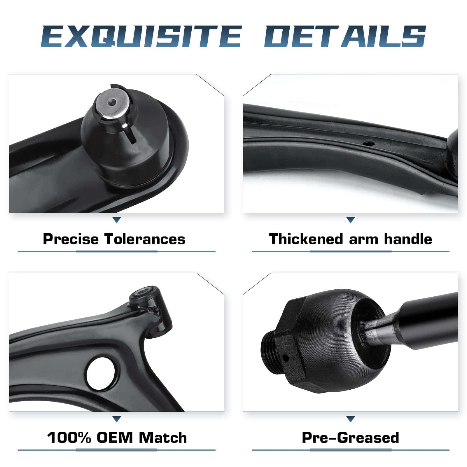 El kit incluye 8 piezas: Brazo de control inferior delantero con junta de bola para el lado del conductor y del pasajero, Incluye: 1x Brazo de control inferior izquierdo delantero con junta de bola – Reemplaza Moog K620066/05105041AA, 1x Brazo de control inferior derecho delantero con junta de bola – Reemplaza Moog K620065/05105040AA, 2x Extremo de barra de dirección interior delantero – Reemplaza Moog EV80645/68040224AA, 2x Extremo de barra de dirección exterior delantero – Reemplaza Moog ES800408/OE:5183761AA, 2x Extremo de barra estabilizadora delantera – Reemplaza Moog K750385/OE:5174185AC. Calidad premium: El duradero brazo de control inferior delantero y la junta de bola están hechos con hierro fundido de alta resistencia y acero, con soportes de montaje de placa sólida para una resistencia y durabilidad superiores. Revestimiento anticorrosivo en el brazo de control para una vida útil prolongada. Mejora la comodidad de conducción: los bujes de goma preinstalados ayudan eficazmente a reducir el ruido y la vibración en la carretera, lo que le permite disfrutar de una conducción suave y controlada durante las curvas y sobre baches. 1 año de garantía: Por favor, verifique cuidadosamente el modelo de su vehículo antes de la compra. Ofrecemos una garantía de 1 año y soporte técnico de por vida del producto, si el kit del brazo de control se daña o presenta algún problema, simplemente contáctenos en cualquier momento para obtener un reemplazo gratuito o un reembolso.