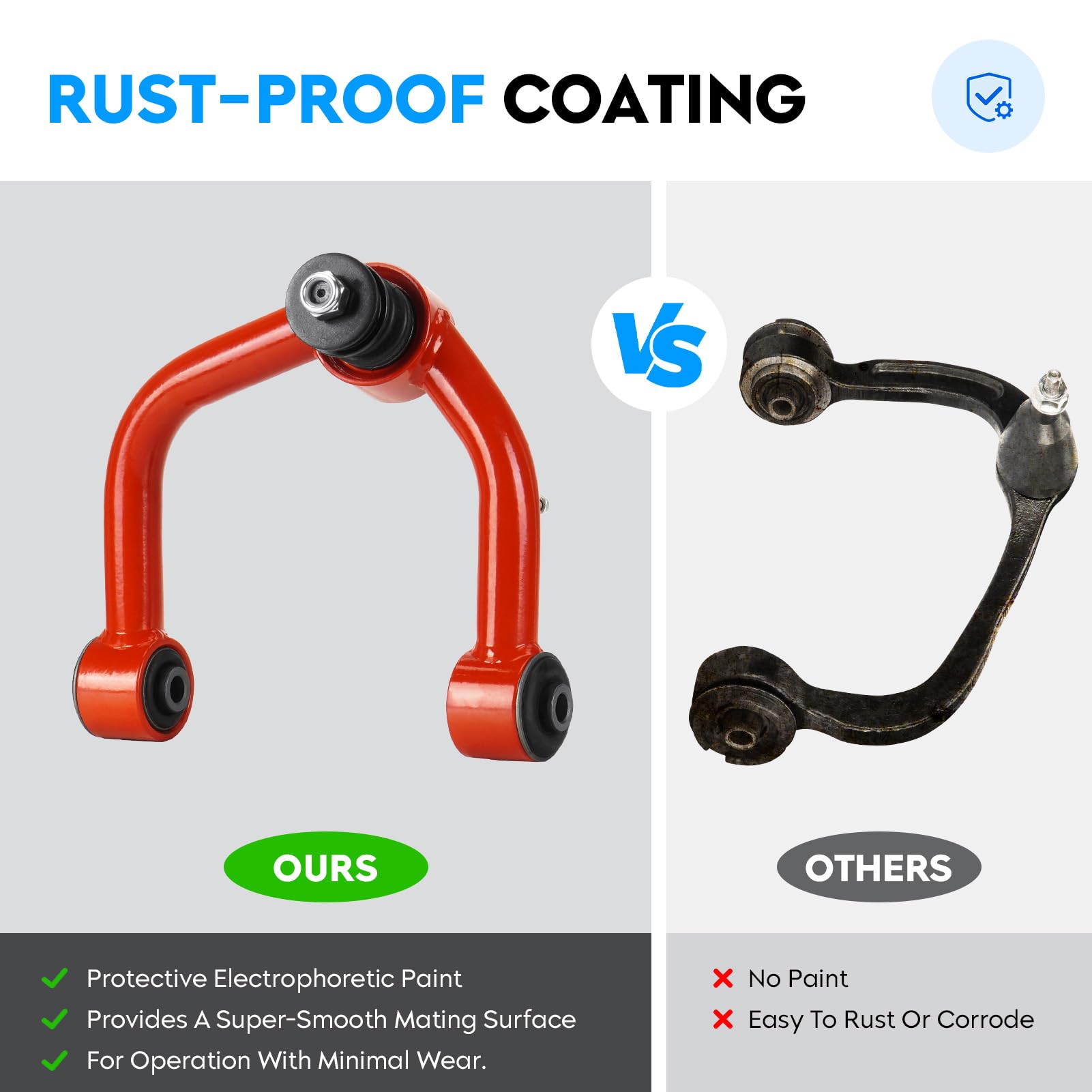 –El recubrimiento anticorrosión en el brazo de control superior puede prolongar la vida útil y prevenir el óxido.