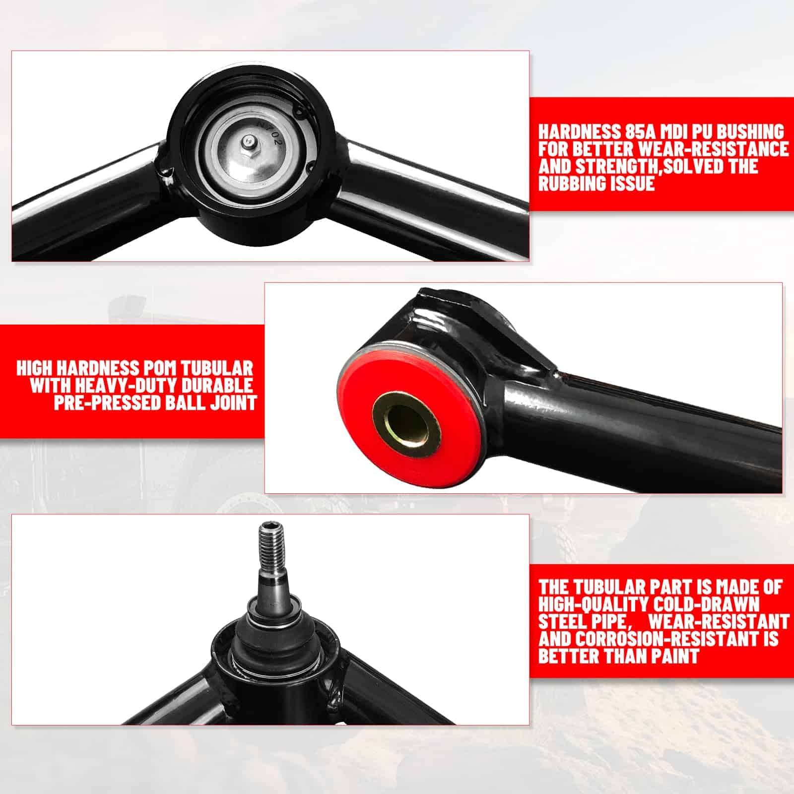 5. Instalación Sencilla: Actualice su vehículo con facilidad. Nuestros Brazos de Control Superior Delanteros están diseñados para una instalación sencilla, minimizando el tiempo de inactividad y permitiéndole disfrutar de los beneficios de una suspensión mejorada rápidamente.