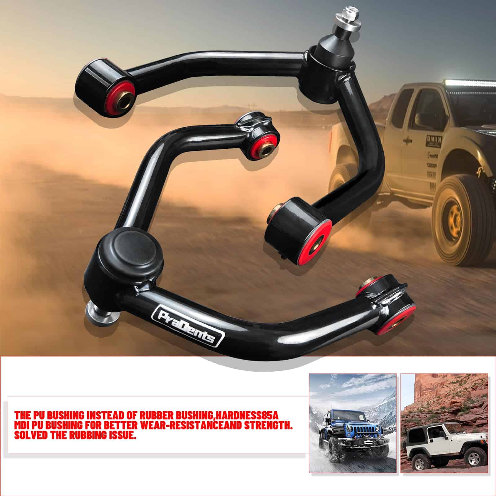 2. Rango de Levantamiento Versátil: Ajuste la suspensión de su vehículo a la perfección con el diseño ajustable de nuestros Brazos de Control Delanteros. El rango de levantamiento de 2-4″ ofrece versatilidad para diversas condiciones de conducción, brindando el equilibrio ideal entre estética robusta y rendimiento funcional.