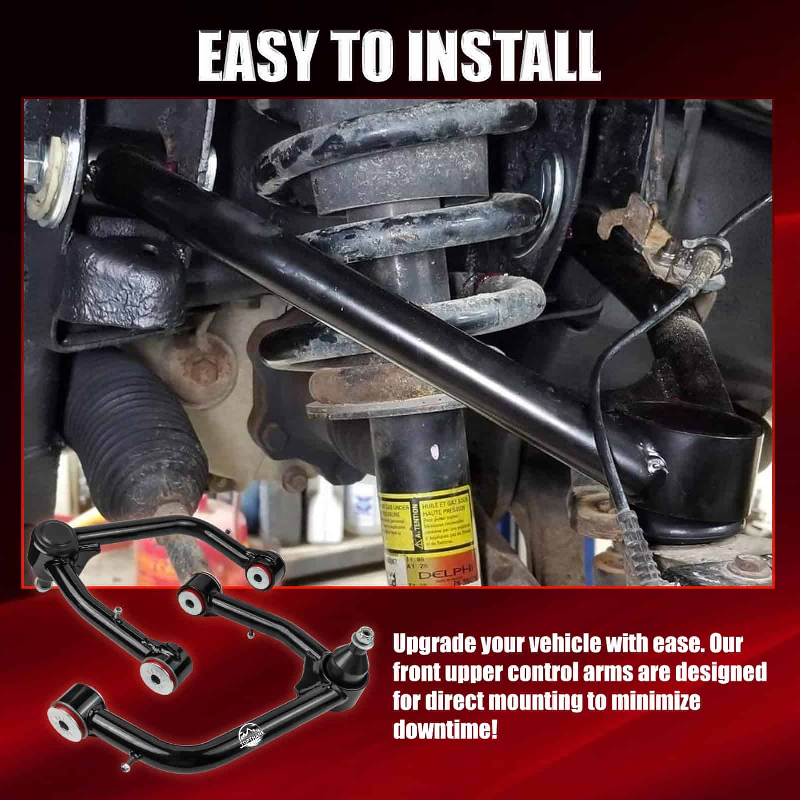 Brazos de control superior delanteros elevados de 2-4″ para Chevy Silverado GMC Sierra 1500 2019-2024. Compatible con vehículos elevados: Diseñados específicamente para sistemas de elevación de 2-4″ en modelos Chevy Silverado y GMC Sierra 1500 2019-2024, garantizando un rendimiento superior para suspensiones modificadas. Construcción de alta resistencia: Fabricados con materiales resistentes para proporcionar una excelente durabilidad y resistir las condiciones rigurosas de conducción diaria y off-road. Geometría de suspensión mejorada: Mantienen la alineación adecuada y los ángulos de suspensión para una mejor manejabilidad y una vida útil prolongada de los neumáticos después de una instalación de elevación. Instalación atornillable: Diseñados para una instalación fácil y sencilla con juntas de bola preinstaladas para mayor comodidad. Acabado duradero: Recubiertos con una superficie protectora para resistir el desgaste, garantizando fiabilidad y una apariencia elegante.