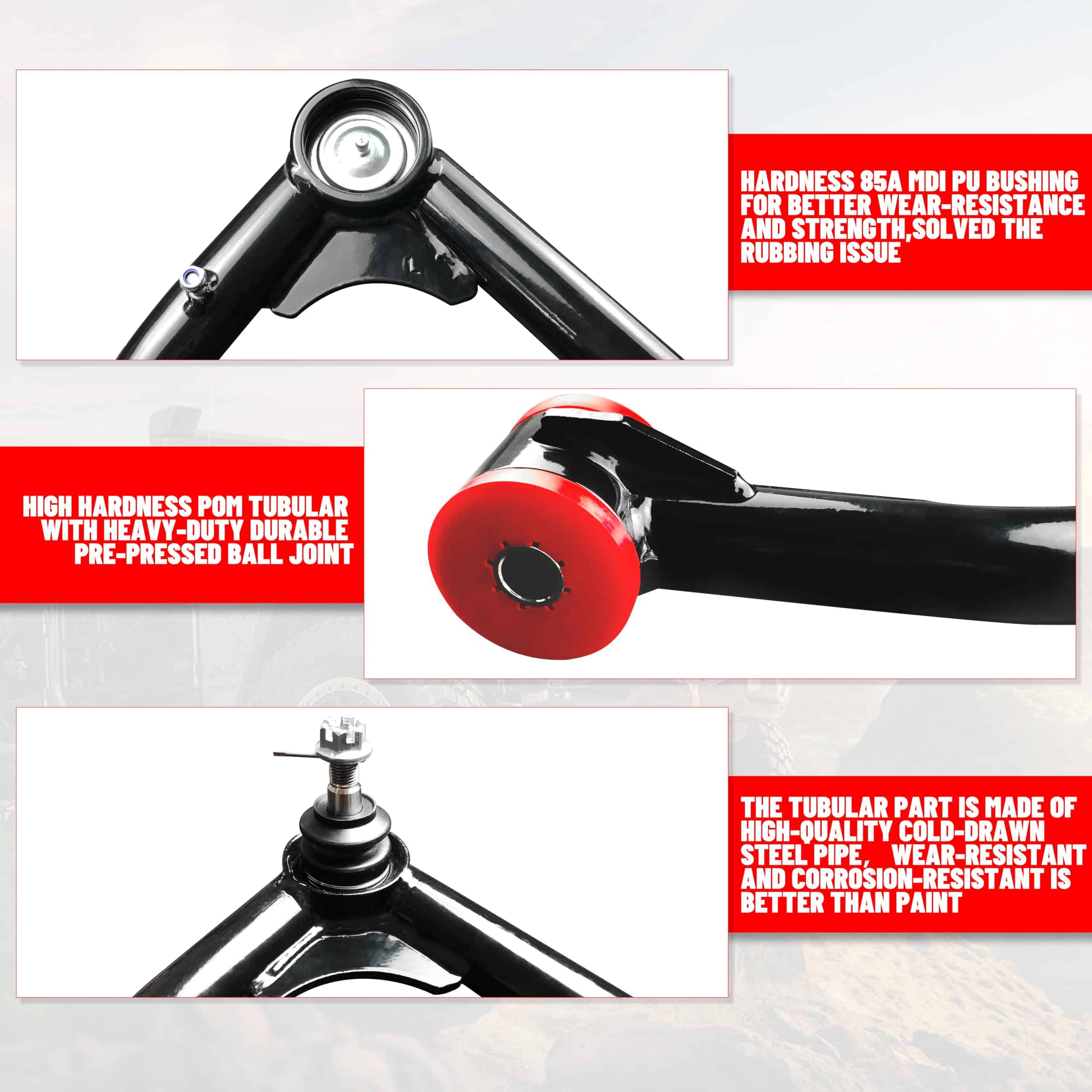 Control de Suspensión Optimizado: Eleva tu experiencia de conducción con nuestros Brazos de Control Superior Delanteros diseñados para una elevación de 2-4″. Logra un control preciso de la suspensión, mejorando tanto la comodidad en carretera como la capacidad todoterreno de tu Toyota Tundra y Sequoia. Rango de Elevación Versátil: Ajusta la suspensión de tu vehículo a la perfección con el diseño ajustable de nuestros Brazos de Control Delanteros. El rango de elevación de 2-4″ ofrece versatilidad para diversas condiciones de conducción, proporcionando el equilibrio ideal entre estética resistente y rendimiento funcional. Ajuste Perfecto para Tundra y Sequoia: Diseñados para adaptarse sin problemas a los modelos Toyota Tundra 2007-2021 y Toyota Sequoia 2008-2022, nuestros Brazos de Control Superior Delanteros garantizan compatibilidad y un ajuste perfecto. Realiza la actualización con confianza, sabiendo que el kit está diseñado específicamente para las especificaciones de tu camioneta o SUV. Construcción Robusta: Construidos para durabilidad, nuestros Brazos de Control Superior Delanteros están fabricados para resistir las demandas de diversas condiciones de conducción. Confía en su construcción robusta para un rendimiento confiable, estabilidad y longevidad. Instalación Sencilla: Actualiza tu vehículo con facilidad. Nuestros Brazos de Control Superior Delanteros están diseñados para una instalación sencilla, minimizando el tiempo de inactividad y permitiéndote disfrutar rápidamente de los beneficios de una suspensión mejorada. Servicio de Calidad: Nuestros productos tienen derecho a un servicio de reemplazo gratuito de piezas durante 2 años, compra con confianza. Estaremos encantados de brindarte apoyo y asistencia para garantizar tu satisfacción a largo plazo después de tu primera compra.