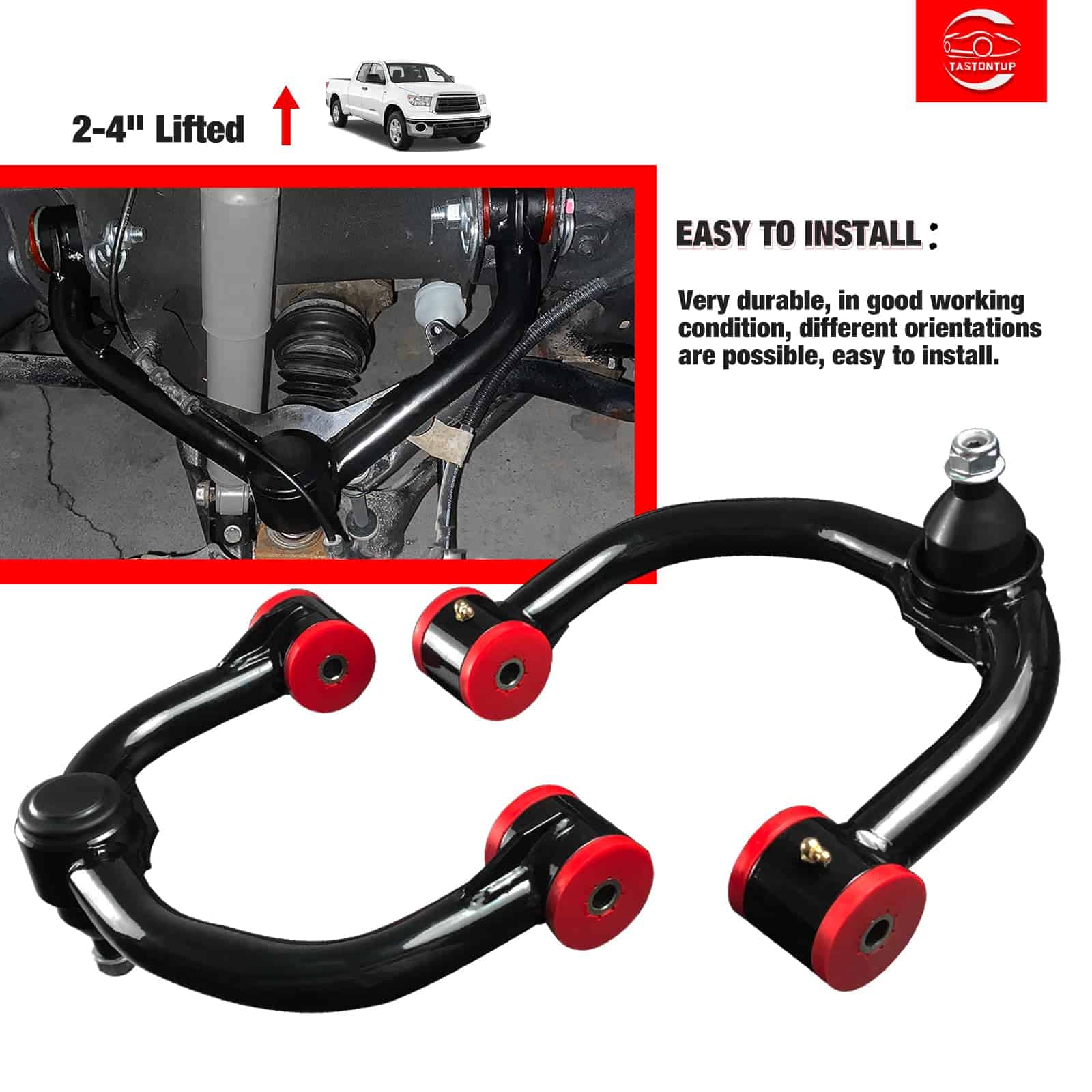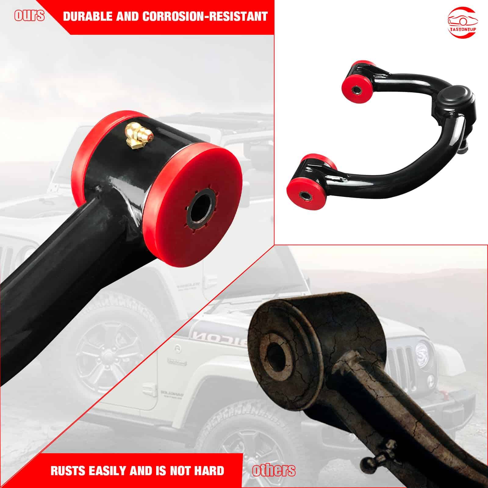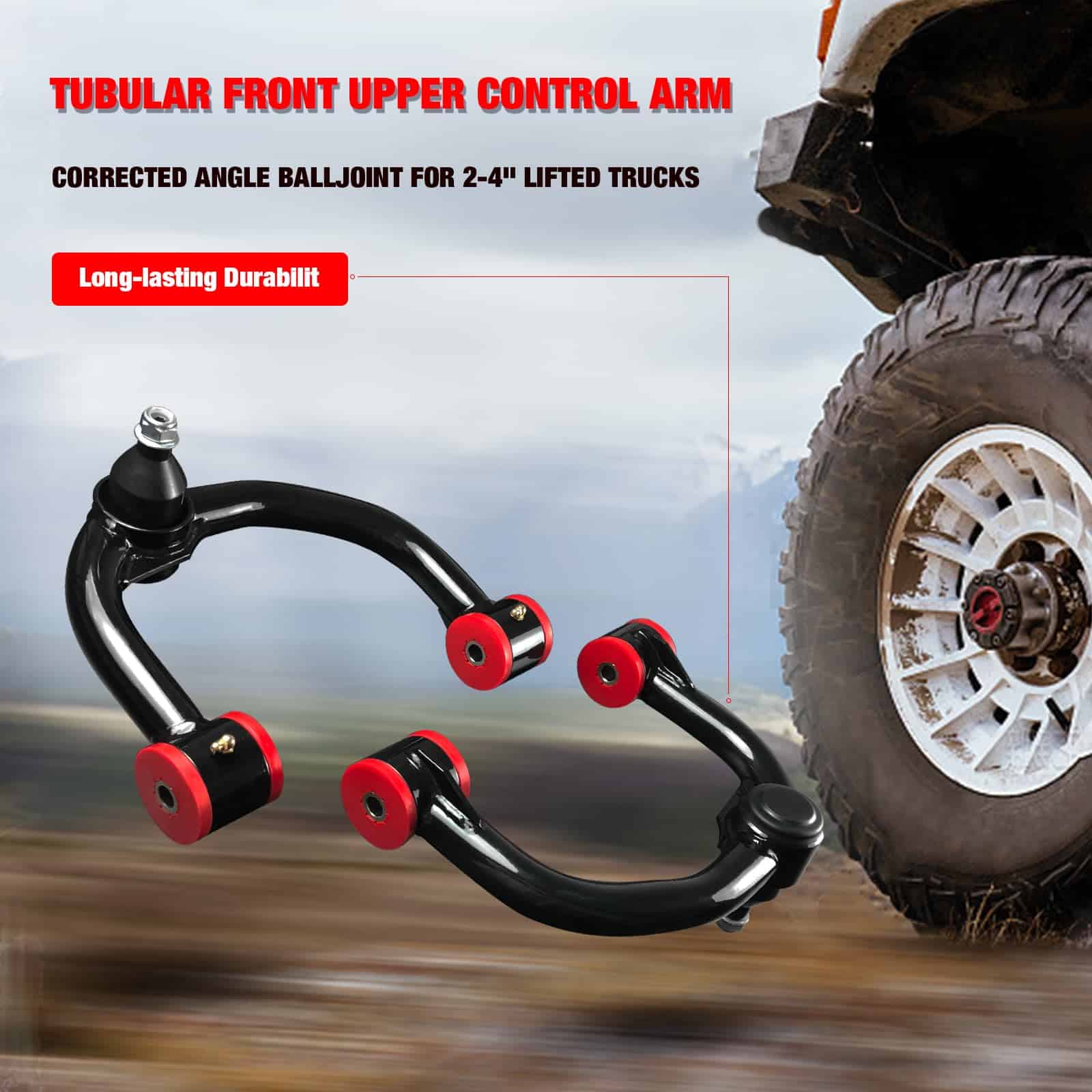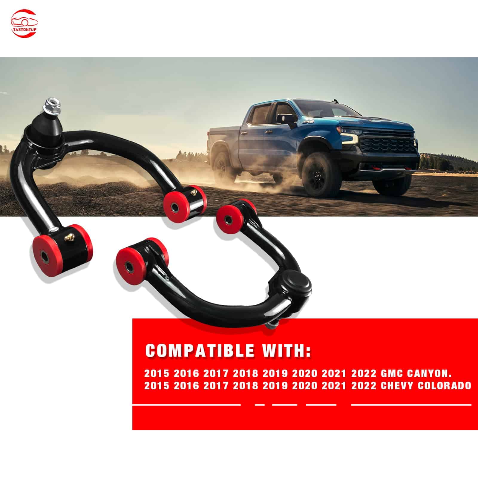 Junta de Bola de Ángulo Corregido para Camionetas Levantadas de 2-4″ Compatible con Chevy Colorado 2015-2022; GMC Canyon 2015-2022. Nueva Ventaja 1. Nuestros brazos de control están equipados con cubiertas protectoras para evitar que líquidos y suciedad de la carretera entren en las juntas de bola durante la conducción, prolongando la vida útil de las juntas de bola. 2. La posición del chiflido de bola de la junta de bola ha sido tratada térmicamente, dureza Rockwell de 50 grados, muy resistente al desgaste. La parte superior de la junta de bola está equipada con tuercas hexagonales para facilitar la instalación y remoción. 3. Mejora la Suspensión Delantera, la Manejabilidad, la Respuesta Predecible e incluso Evita el Desgaste Prematuro de los Neumáticos. Brazo de Control Superior Delantero Tubular de Ángulo Corregido de 2-4″ Levantado que no se Atascará como el Brazo de Control OEM cuando esté Equipado con un Kit de Elevación. Herramientas Profesionales de Alta Calidad Nuestros productos utilizan caucho de alta calidad, que es más adecuado para bajas temperaturas y más duradero. Soldadura TIG La soldadura TIG proporciona una estructura más estable y reforzada que la soldadura MIG. Cubierta de Polvo Tipo Torre de Alta Calidad Para Bota «Torre», Larga Vida Útil. Mango más Grueso Construido con tubería DOM para una mayor resistencia y durabilidad.