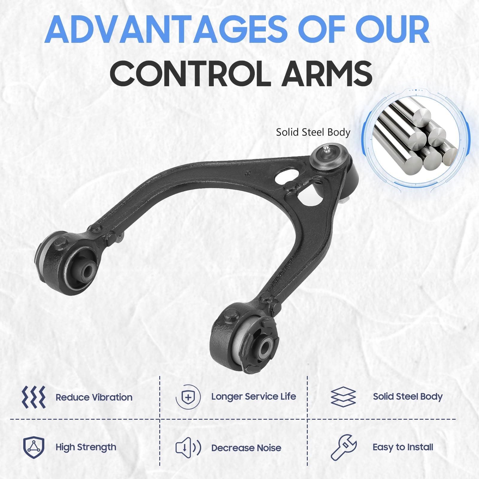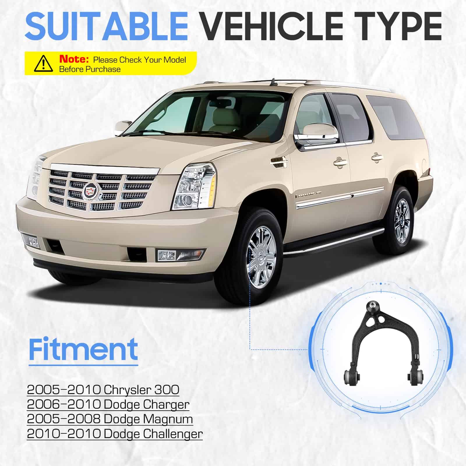 Kit de Brazos de Control Superiores Delanteros Perfect Fitment que se adapta a 2005-2010 Chrysler 300 SOLO TRACCIÓN TRASERA, 2005-2008 Dodge Magnum SOLO TRACCIÓN TRASERA, 2006-2010 Dodge Charger SOLO TRACCIÓN TRASERA, 2008-2010 Dodge Challenger SOLO TRACCIÓN TRASERA. Los brazos de control superiores delanteros duraderos están fabricados con tubos de acero de alta resistencia con soportes de montaje de placa sólida para una resistencia y durabilidad superiores. Tratado térmicamente para igualar o superar los requisitos del OE para inhibir fallas prematuras y mejorar la resistencia a la fatiga. Tolerancias de precisión para una instalación fácil en todas las piezas. El brazo de control superior tiene una alineación de dirección que garantiza un trabajo perfecto. Antes de realizar el pedido, verifique el modelo de su automóvil en el sistema de ajuste de el fabricante en la esquina superior izquierda.