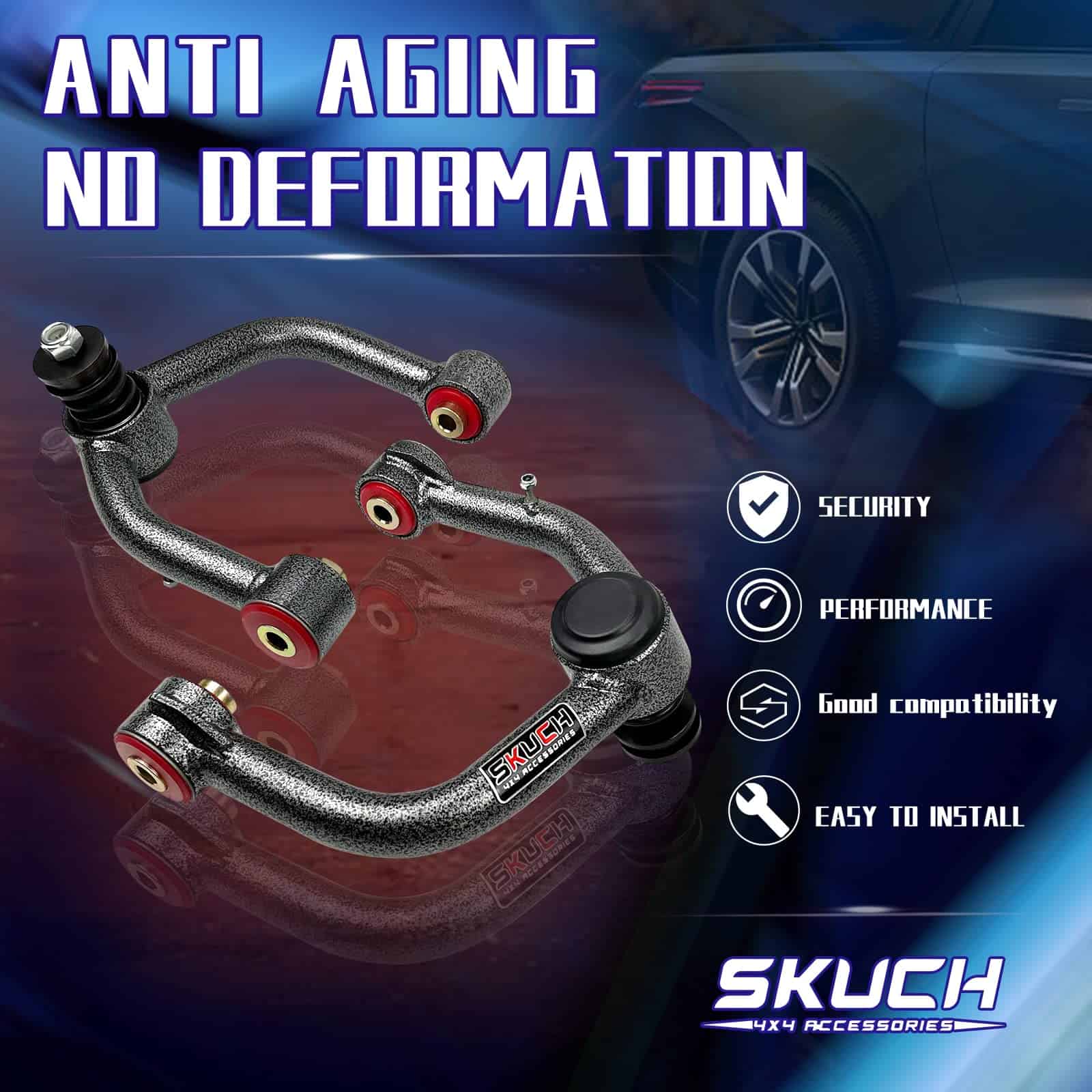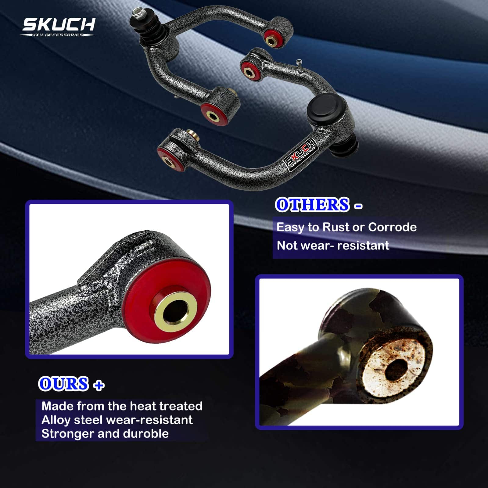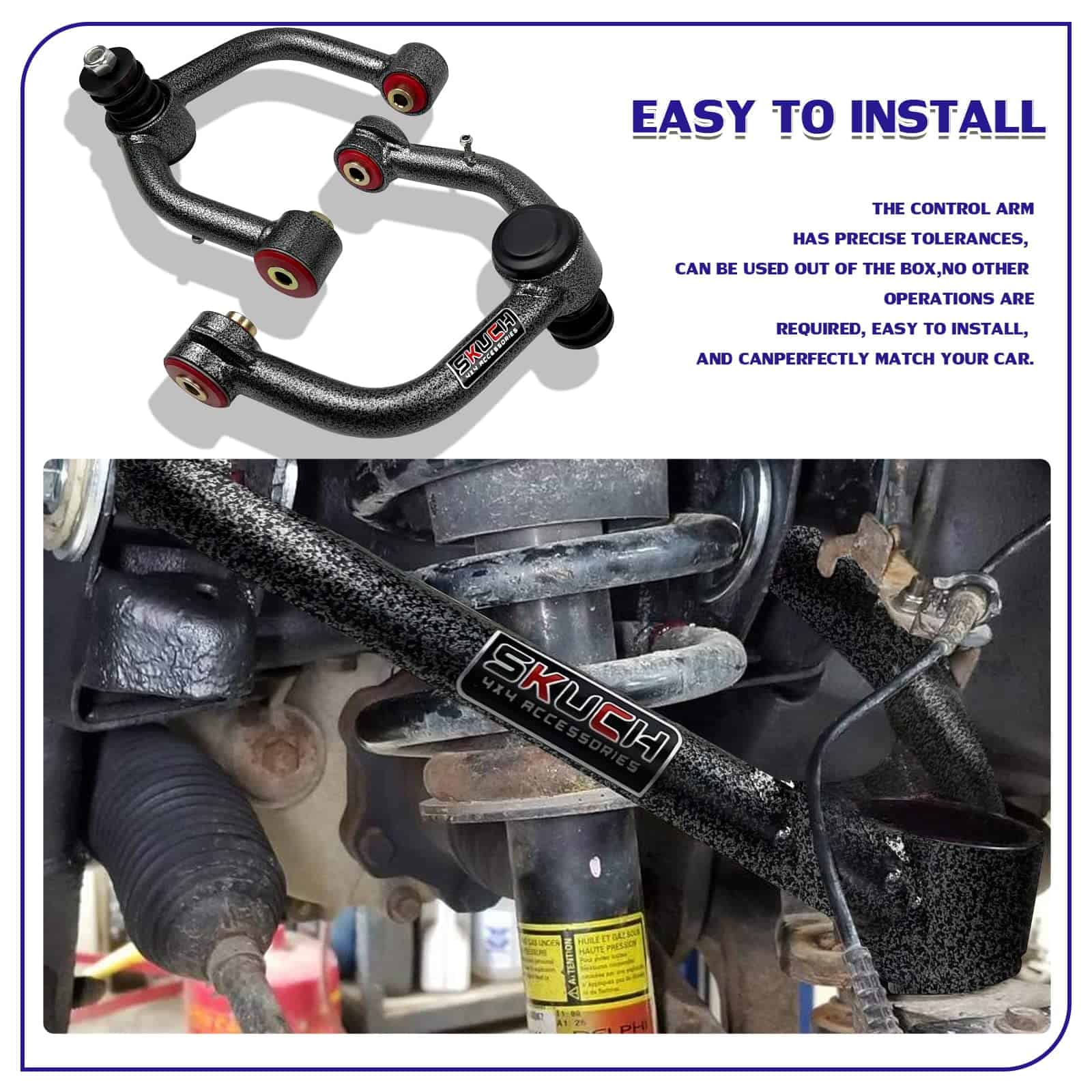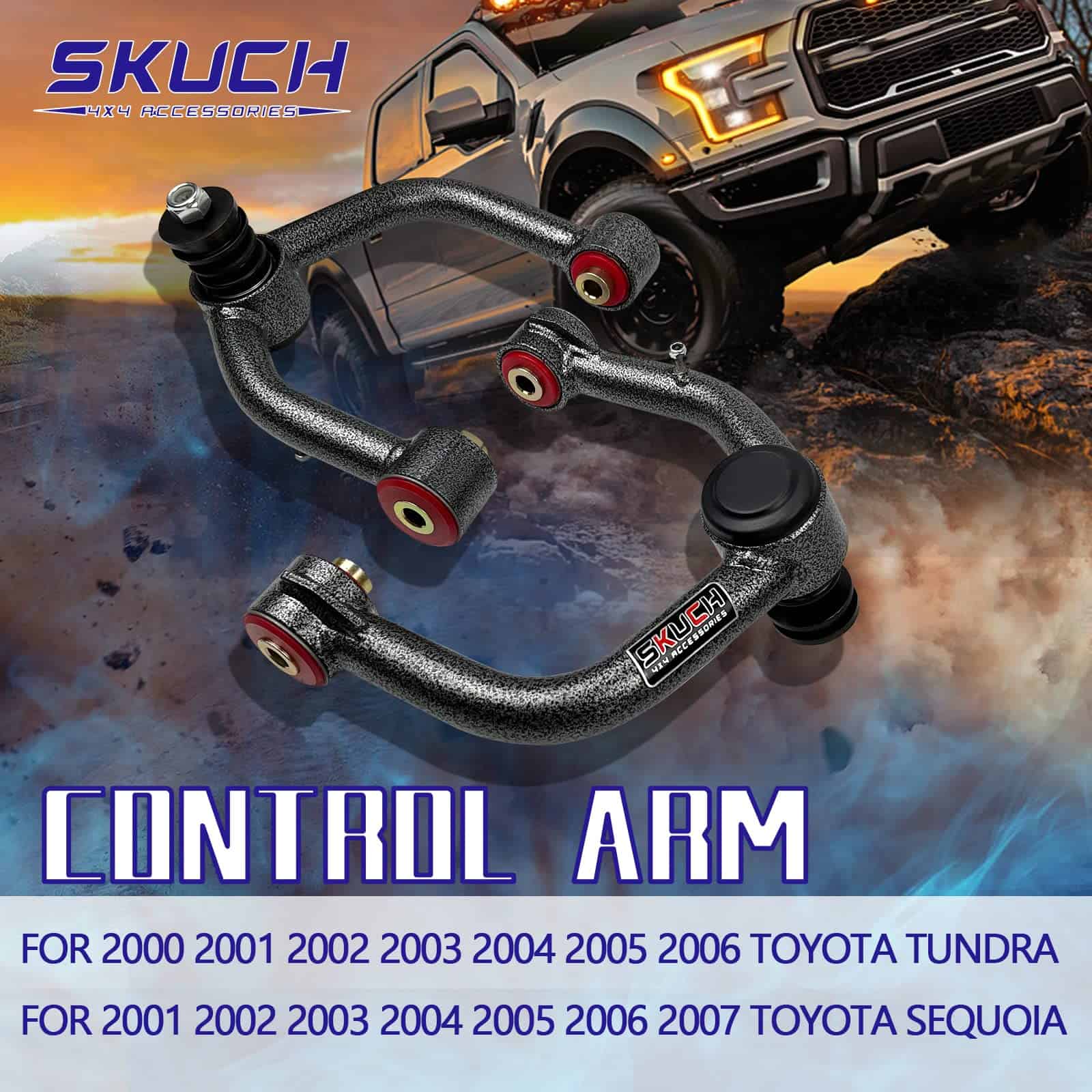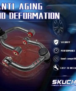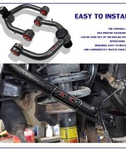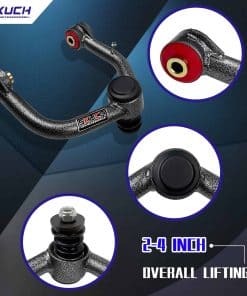 Brazos de Control Superiores Delanteros Kit de Nivelación de Suspensión Tubular para Elevación de 2-4″ Compatibilidad: Toyota Tundra 2000 2001 2002 2003 2004 2005 2006 Toyota Sequoia 2001 2002 2003 2004 2005 2006 2007 Equipado con una cubierta protectora para evitar que entre el lodo en la junta de rótula, prolongando así la vida útil. El perno de la junta de rótula está hecho de acero de aleación tratado térmicamente, más resistente y duradero Se requiere alineación después de instalar los brazos. No apriete demasiado el zerk, diferentes direcciones estarán bien Diseño más profesional de la junta de rótula, no es necesario agregar grasa adicional para la primera instalación. La parte tubular está hecha de tubería de acero de alta calidad hecha en frío, que es útil para la corrección del chasis después de que el vehículo esté elevado. Superficie con recubrimiento en polvo, más resistente al desgaste y a la corrosión que la pintura, más adecuada para un entorno al aire libre. Soldadura TIG y tubular más grande de los brazos de control superiores son más sólidos Soldadura de precisión profesional Hecho de acero al carbono tratado térmicamente para aumentar la dureza y la resistencia Cajas y casquillos de casquillos de CNC mecanizados Mayor rango de movimiento y más fácil instalación. Incluye: Par de Brazos de Control Superiores Delanteros y Juntas de Rótula