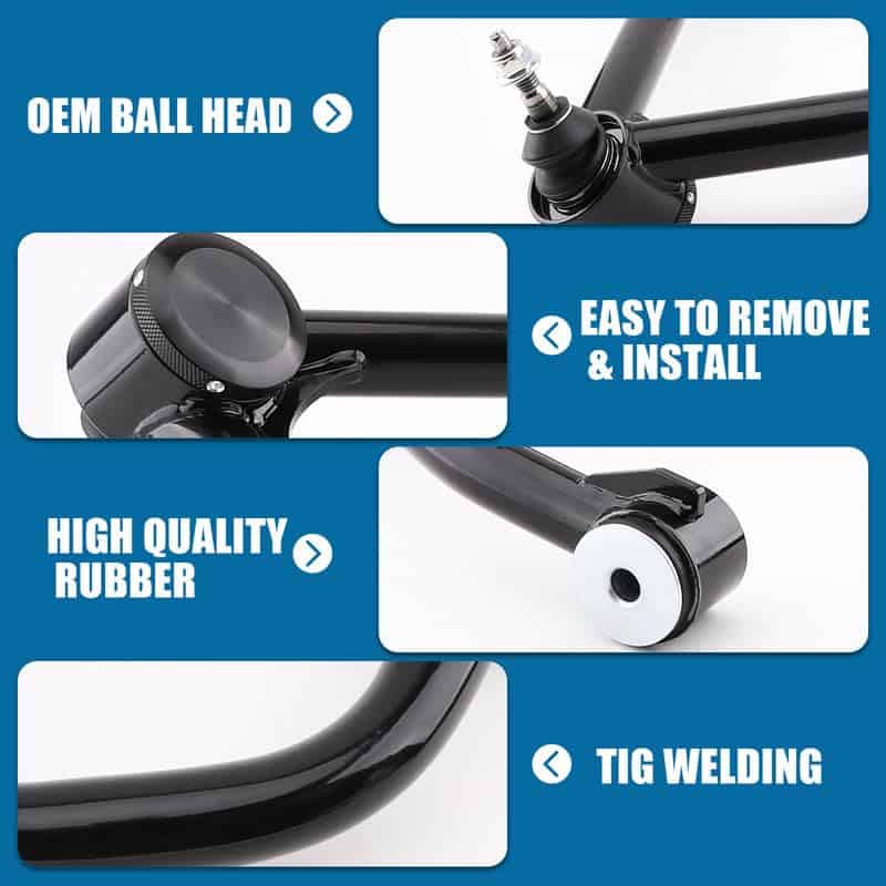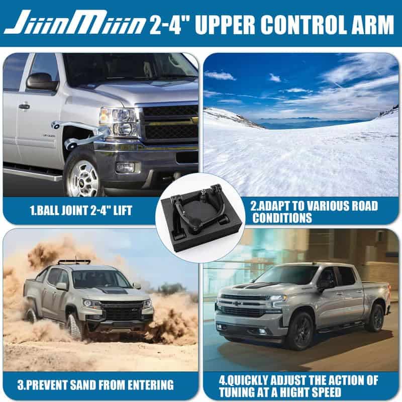 1. Empezamos con Seguridad – Hecho de Materiales Premium y Duraderos – Superficie Tratada de Revestimiento en Polvo y 360 Horas de prueba de resistencia a la corrosión y 10-20 mil millas de prueba de fatiga corrosiva para garantizar una conducción segura, los brazos de control superiores tubulares mejorados de JiiinMiiin son más sólidos y estables, mejorando el rendimiento de seguridad.