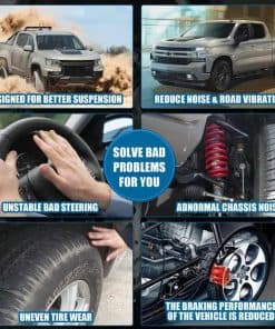 3. Somos Mejores – Todo el BUSHING de PU en lugar del buje de goma, que es mucho mejor que el buje de goma, cubierta de polvo tipo torre (vida útil más larga) es más aplicable en condiciones de alta y baja temperatura; El diseño estructural razonable mejora el rendimiento de conducción todo terreno. Actualización/mejora del ángulo de la tubería, sus camiones pueden ser elevados 2 pulgadas sin cambiar los amortiguadores.