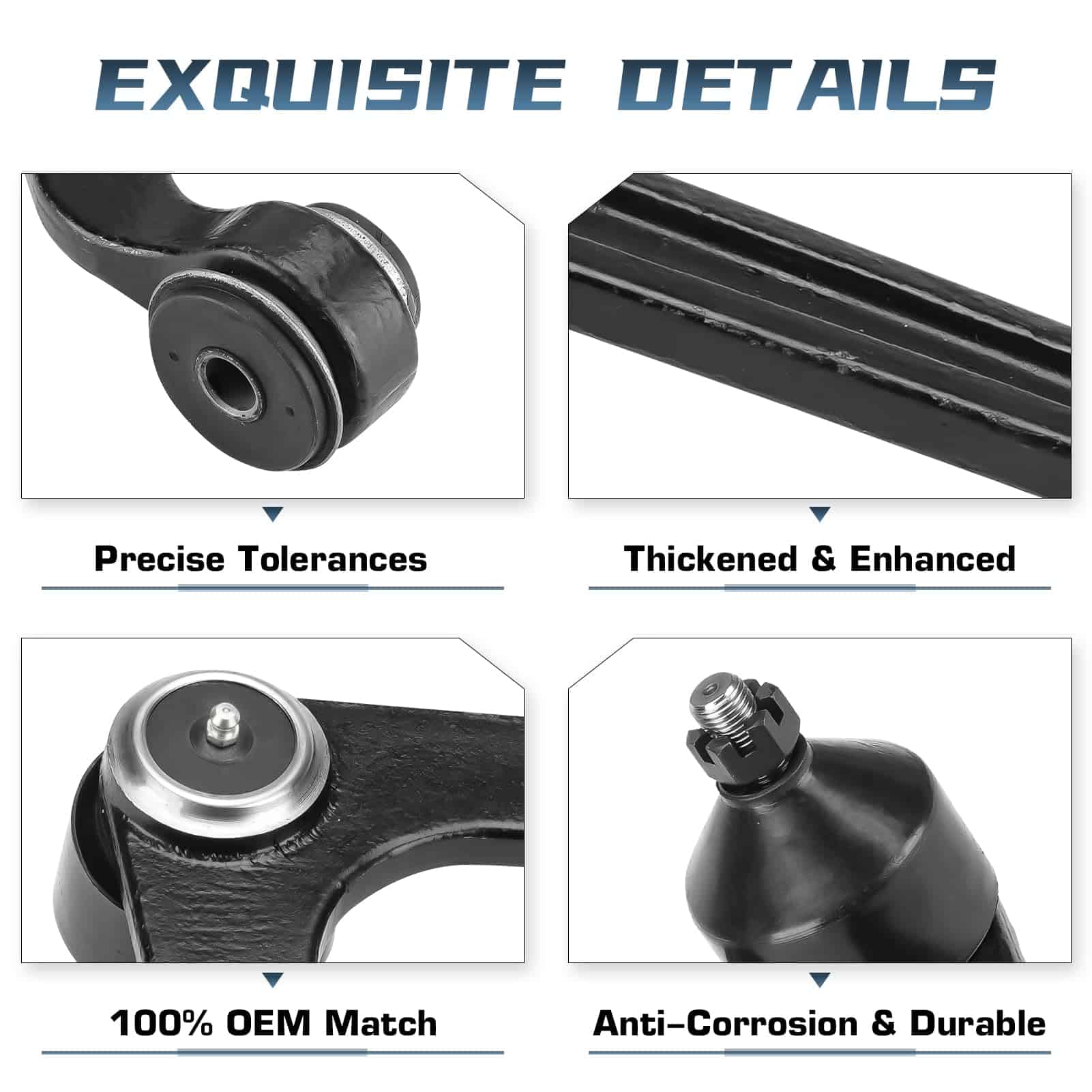 Vehículos Aplicables: Se adapta a 2002 2003 2004 2005 DODGE RAM 1500 todos los submodelos. Paquete Incluye: 2x Brazo de Control Superior Delantero con Ensamble de Juntas de Rótula – K7424 2x Juntas de Rótula Inferiores Delanteras – K7411