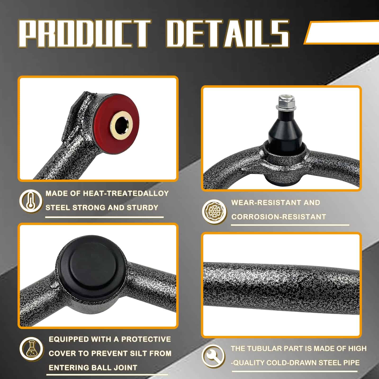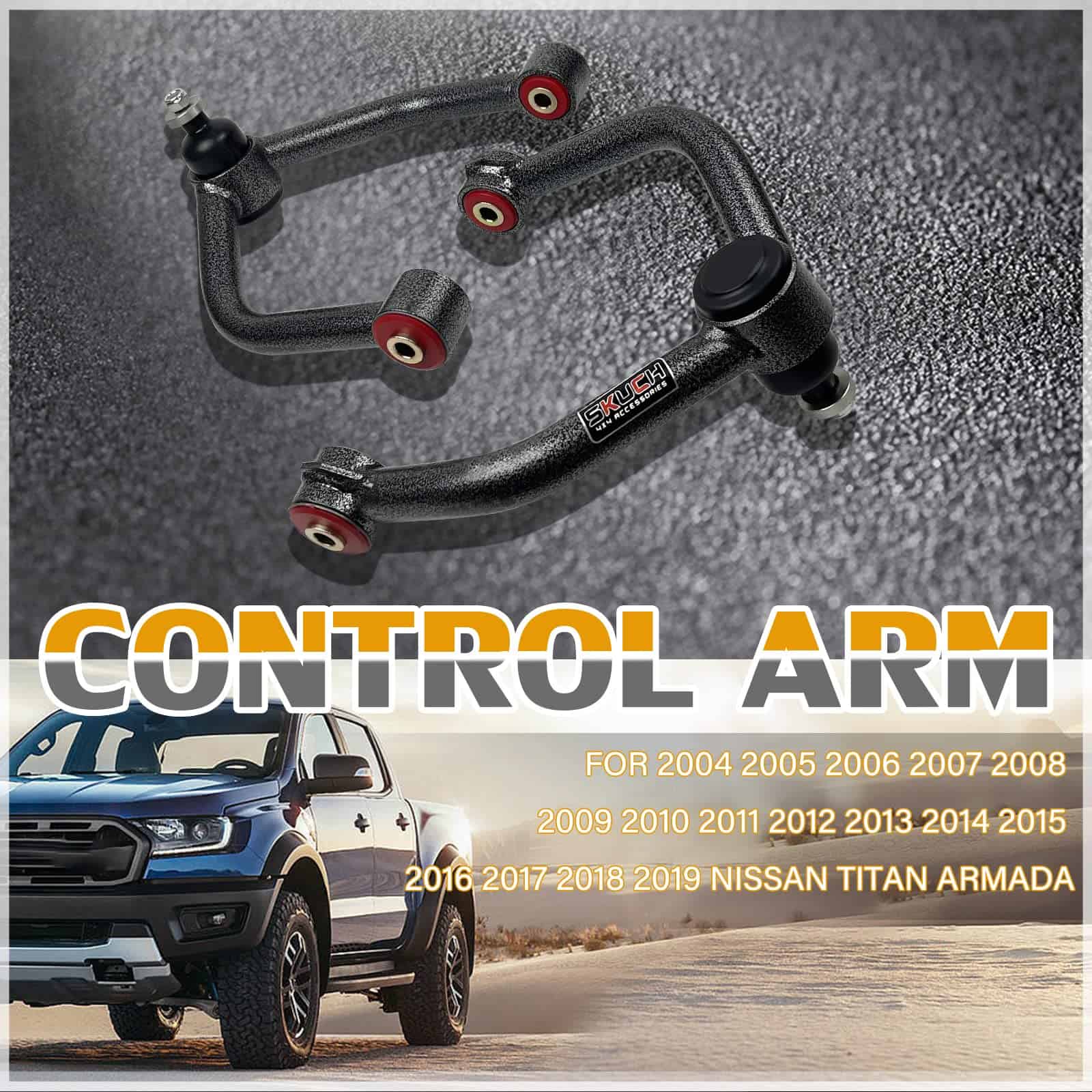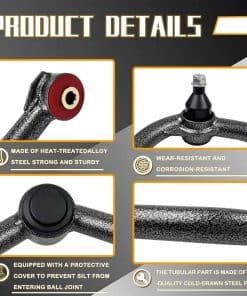 Compatible con Nissan Titan y Armada del 2004 al 2019. Los brazos de control superiores delanteros son una opción ideal para aquellos que buscan elevar su vehículo 2-4″ para un mejor rendimiento fuera de la carretera. Diseñados con TIG soldado y tubulares más grandes, estos brazos de control superiores son más sólidos y duraderos. Fabricados con acero al carbono tratado térmicamente para aumentar la dureza y resistencia. Los casquillos y mangas mecanizados por CNC, junto con los casquillos de PU, ofrecen una conducción más estable y fiable. La capa de polvo en la superficie garantiza una apariencia suave y hermosa, resistente al óxido y la corrosión. Fáciles de instalar, se recomienda la instalación profesional. Disfruta de un diseño más profesional de las articulaciones de la bola, con una cubierta protectora para prevenir la entrada de suciedad y prolongar su vida útil. El casquillo de la articulación de la bola está hecho de acero de aleación tratado térmicamente, proporcionando mayor resistencia y durabilidad. La grasa preinstalada y la bota contra el polvo protegen los componentes de desgaste, superando la calidad de fábrica. Los casquillos de PU mejoran la maniobrabilidad y la vida útil, siendo más adecuados para entornos de alta y baja temperatura. El tubular de acero de alta calidad es útil para la corrección del chasis después de elevar el vehículo. El diseño del zerk con rosca permite una fácil adición de grasa. La superficie recubierta de polvo es resistente al desgaste y la corrosión, siendo más adecuada para entornos exteriores. La articulación con posibilidad de engrase reduce la corrosión y el desgaste al permitir que la nueva lubricación elimine contaminantes.