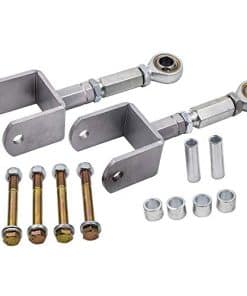 Aplicación para Ford Mustang 1979-2004; no es compatible con Mustang Cobra con IRS 1999-2004 Contenido del paquete: 2 x Brazos de control superiores traseros ajustables Tornillos y tuercas Hardware (como se muestra en la imagen) PS: Los bujes están instalados en los brazos de control. Características: Cortado con máquina CNC de acero al carbono. Acabado de calidad para evitar el óxido y la corrosión. Todas las costuras de soldadura han sido probadas. Mejora la geometría de la suspensión para reducir el tirón de la dirección al pasar por baches. Perfecto para autos de pista, control de derrape, circuito callejero, conducción todoterreno. Instalación directa para piezas originales de OE de fábrica o de repuesto. Se recomienda encarecidamente a un instalador profesional (no se incluye instrucciones). Se recomienda alineación después de la instalación. Nota: No dude en contactarnos para cualquier ayuda que podamos ofrecer. La instalación profesional es muy recomendable.