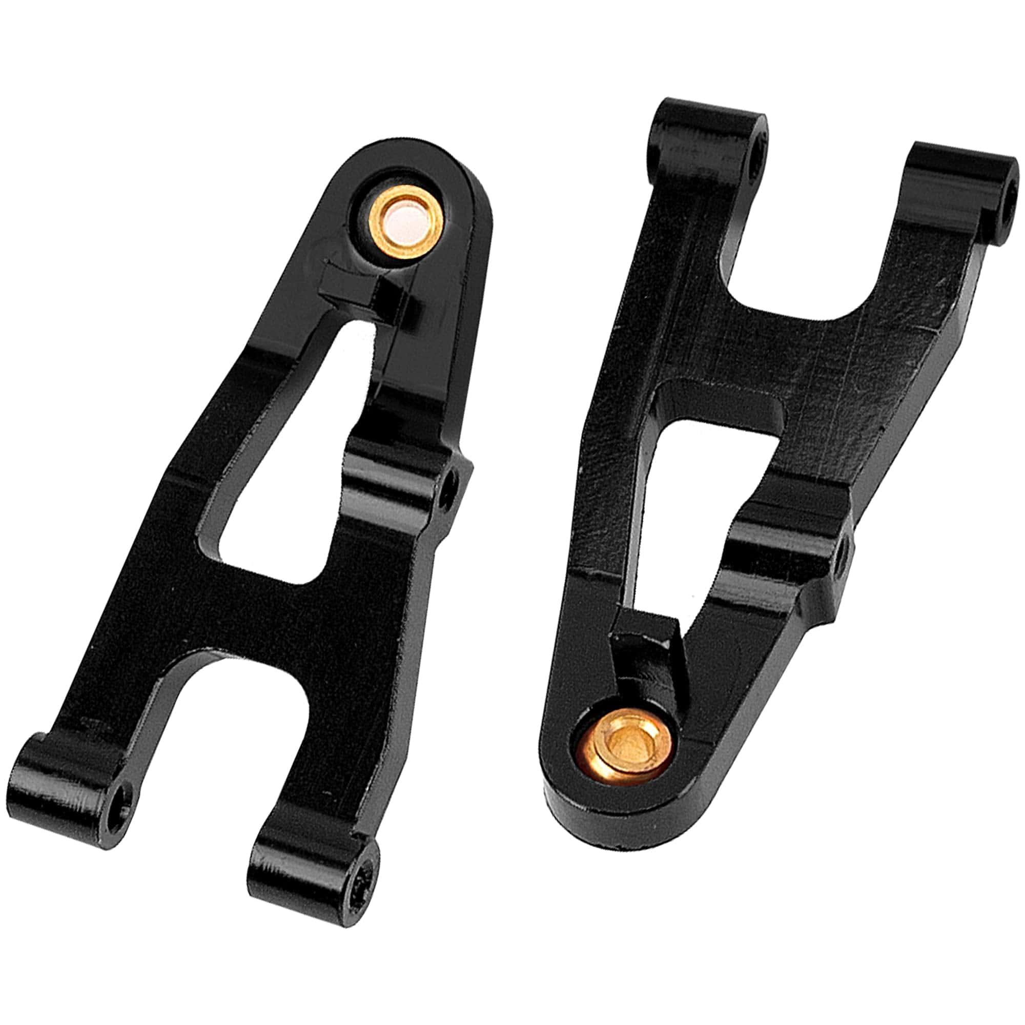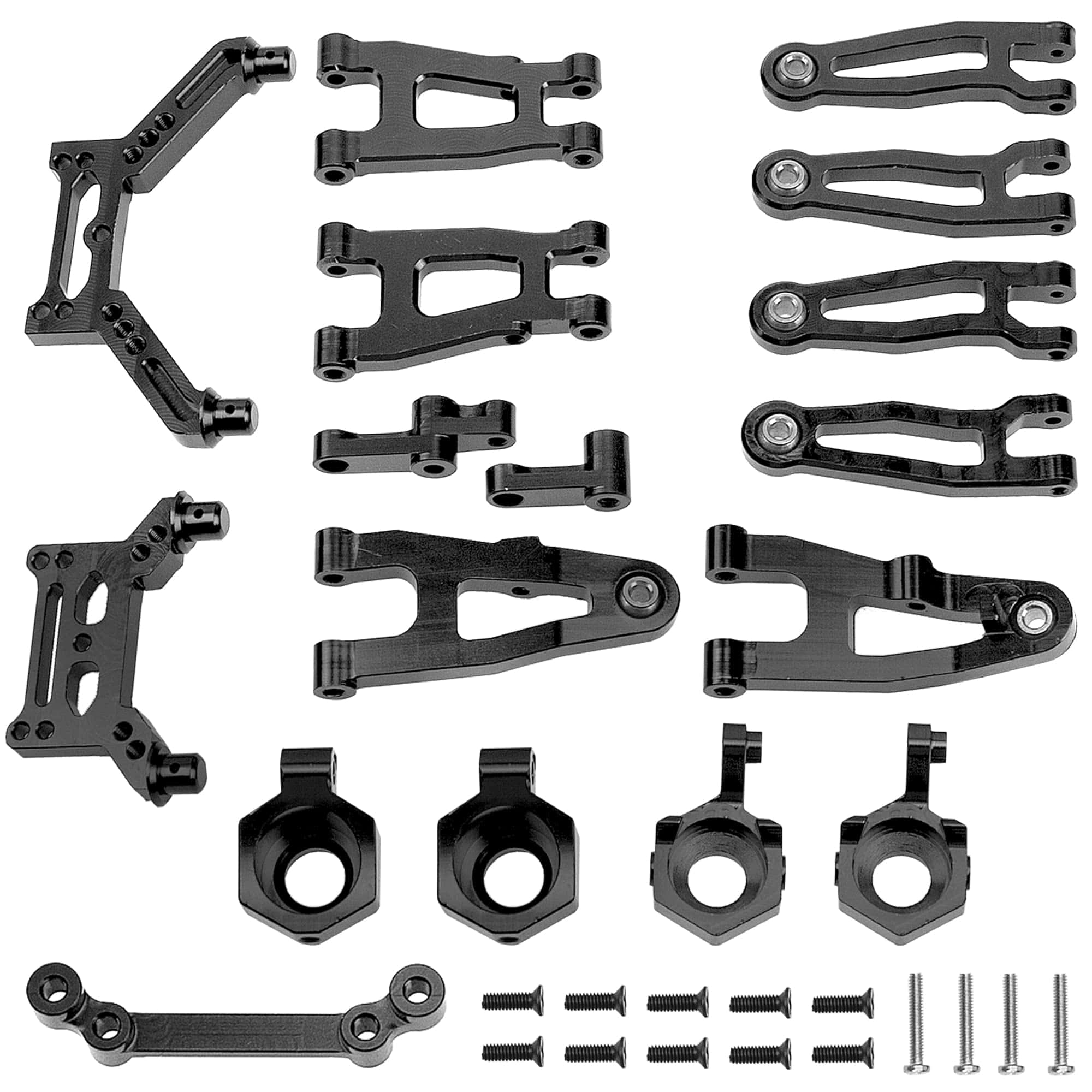 La pieza de actualización es compatible con el coche rc SG1603 SG1604 UD1601 UD1602 1/16. Las partes de actualización sg1603 están hechas de una aleación de aluminio de alta calidad, ligera y duradera. La actualización ligera mejora instantáneamente el rendimiento general en el manejo y la durabilidad. Fácil de instalar y quitar, piezas de repuesto perfectas para las antiguas o rotas. Piezas de actualización para modelos de coches rc; adecuadas para diferencial metálico. Material: Aleación de aluminio. Color: Negro. Peso: 76g/conjunto. Paquete incluye: 2 x Soporte de choque, 2 x Soporte de maza delantera, 4 x Brazo de suspensión inferior, 4 x Brazo de suspensión superior, 2 x Porta cubo trasero, 1 x juego de tornillos.