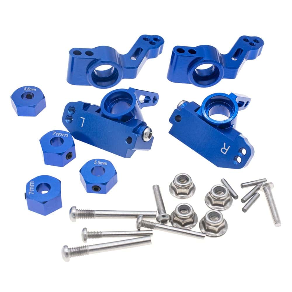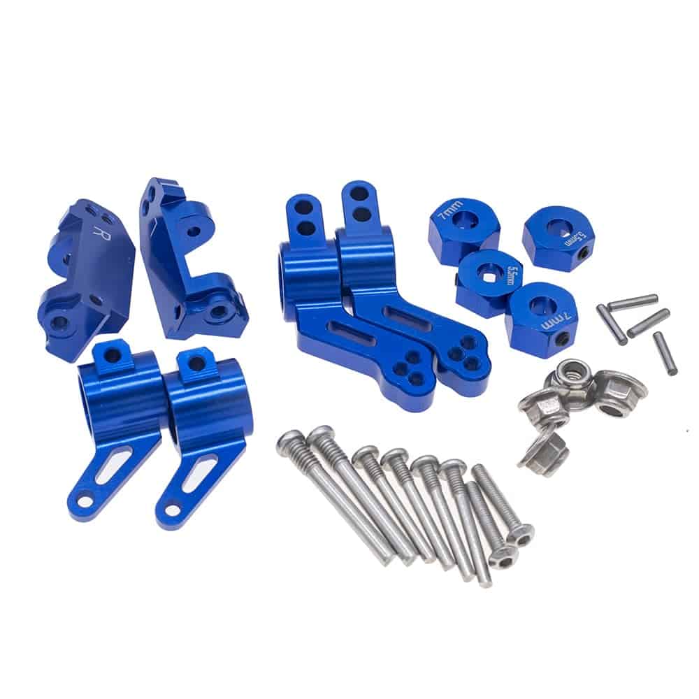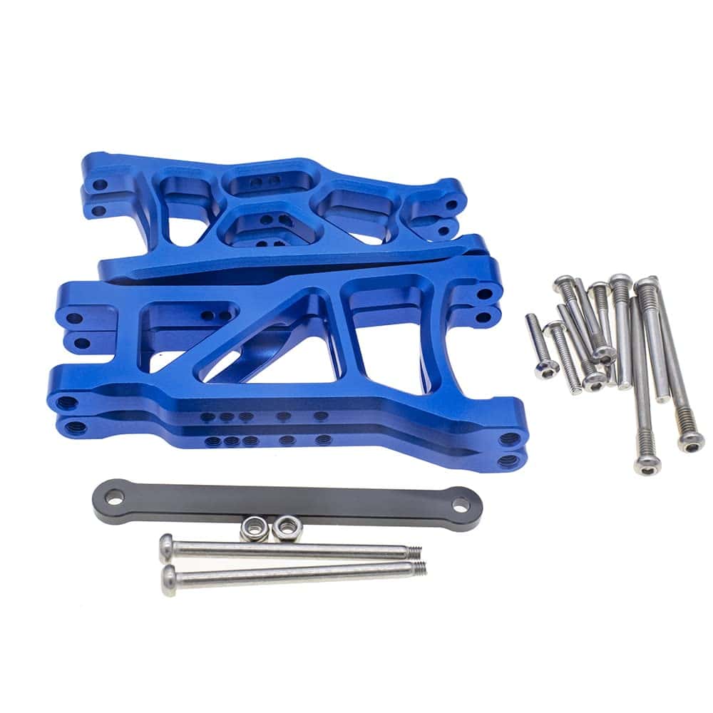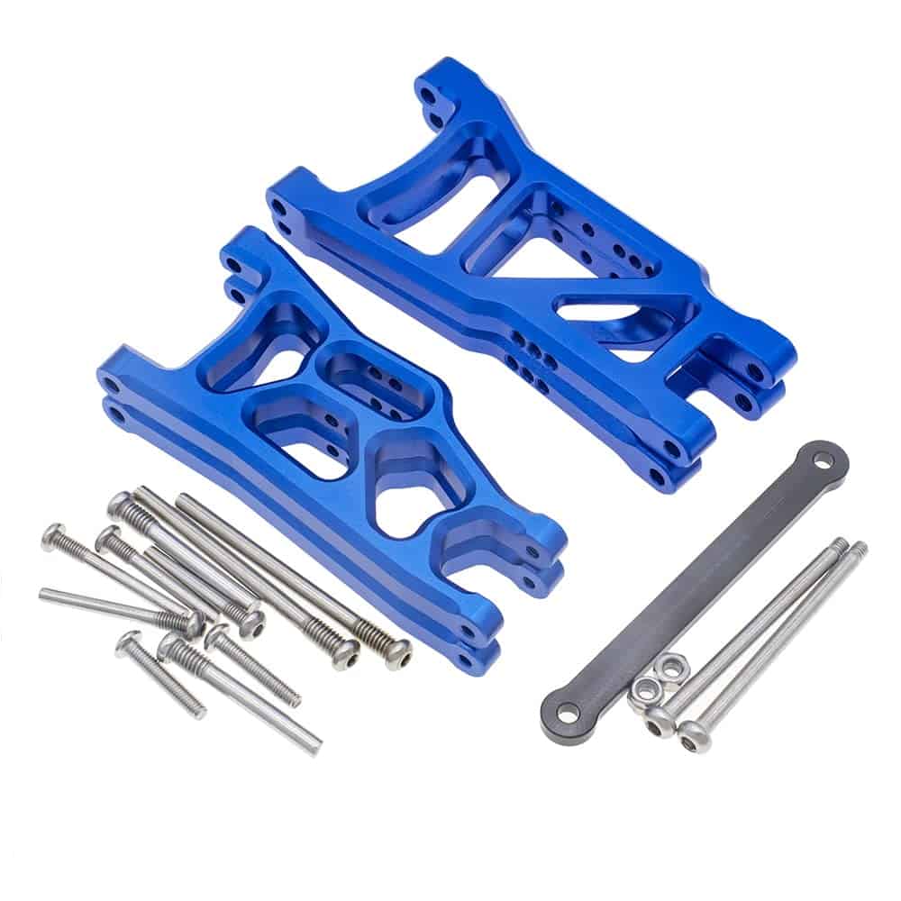 Aluminum Front&Rear Suspension A-Arms Caster Steering Blocks Stub Axle Carriers for Traxxas 2WD 1/10 Slash, Stampede, Rustler, Nitro Slash – Reemplaza las partes 3736 3632 3752 3631