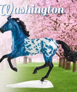 Hasta la fecha, innumerables lugares, escuelas y maravillas naturales han sido nombrados en honor a George Washington y ahora, ¡un caballo modelo de Breyer! Washington luce un manto de appaloosa azul eléctrico con puntos negros, dándole un toque decorativo divertido a un patrón blanco realista. ¡Combinará perfectamente con un cabestro, manta o almohadilla de montar roja para un conjunto rojo, blanco y azul completo!