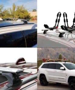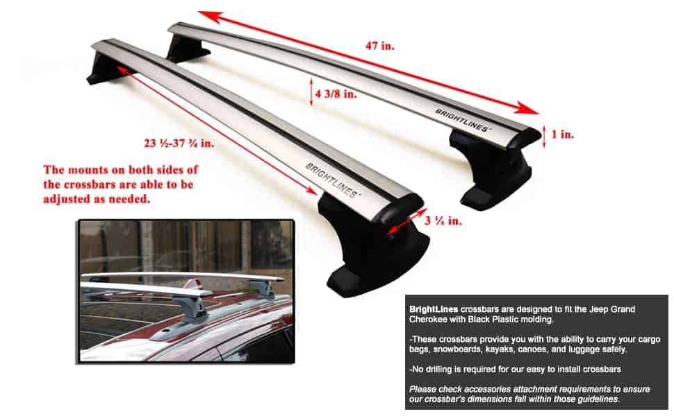 Las barras transversales se atornillan directamente a los agujeros preestablecidos en el techo. No requiere perforación. Equipo imprescindible para llevar accesorios de techo como bolsas de techo, portabicicletas, portaesquís, bacas de techo, etc. Se ajusta a Grand Cherokee Altitude, SRT y modelos con molduras de techo negro.