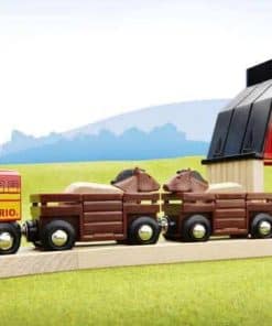 Bienvenido al set de trenes BRIO Farm Railway, un lugar donde la imaginación florece y la creatividad cobra vida. Este set interactivo de 20 piezas está diseñado para estimular las mentes jóvenes y brindar horas de diversión interminable. El set incluye un tren con motor y vagón de carga, un tractor agrícola con remolque, un granero de doble altura con grúa magnética, un cruce de vías, una vaca, heno y cercado. Perfecto para niños de 3 años en adelante, jugar con este set promueve la comprensión de su entorno, mejora las habilidades motoras y fomenta la creatividad. Las vías de madera son compatibles con todos los demás juguetes de trenes BRIO, permitiendo que el juego de trenes de su hijo crezca y evolucione. En BRIO, priorizamos la seguridad, realizando más de 1,000 pruebas anualmente para garantizar que nuestros juguetes cumplan con todos los estándares de seguridad. Este set de trenes está hecho con madera certificada FSC de bosques bien gestionados, demostrando nuestro compromiso con la sostenibilidad y las prácticas forestales responsables. Con el set de trenes BRIO Farm Railway, la diversión está a solo un viaje en tren de distancia.