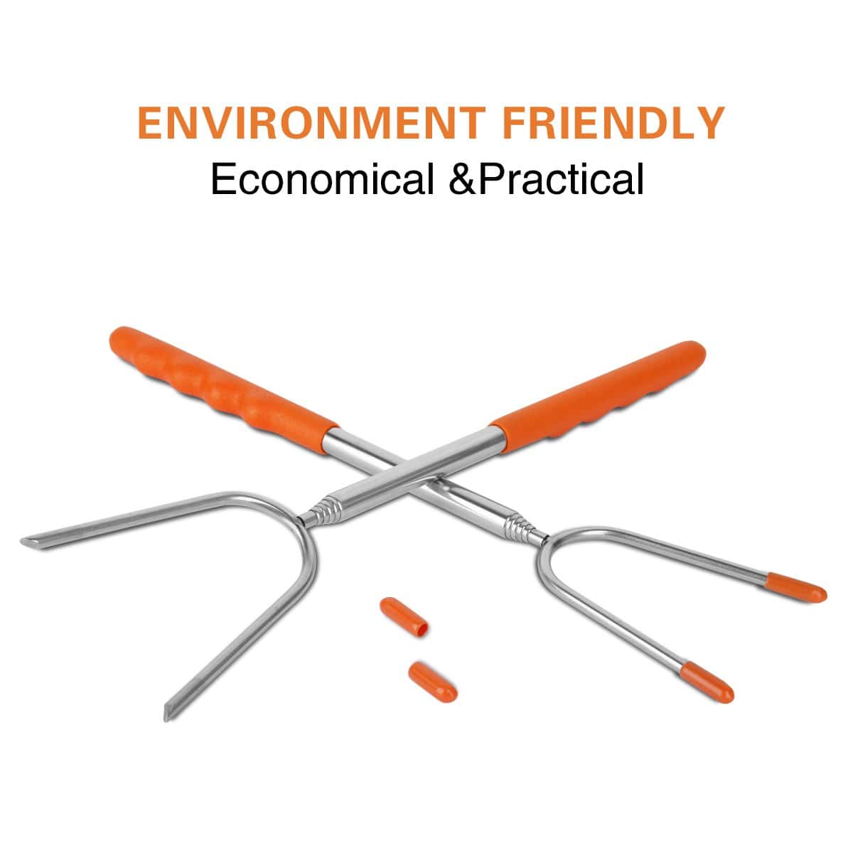 2. LONGITUD SEGURA PARA NIÑOS: La longitud más larga de esta varilla para asar es de 45» lo que ayuda a mantenerlo a usted y a sus hijos a una distancia segura del fuego. El mango duradero y de alta calidad también protege su mano del calor y reduce la presión del peso de los alimentos.