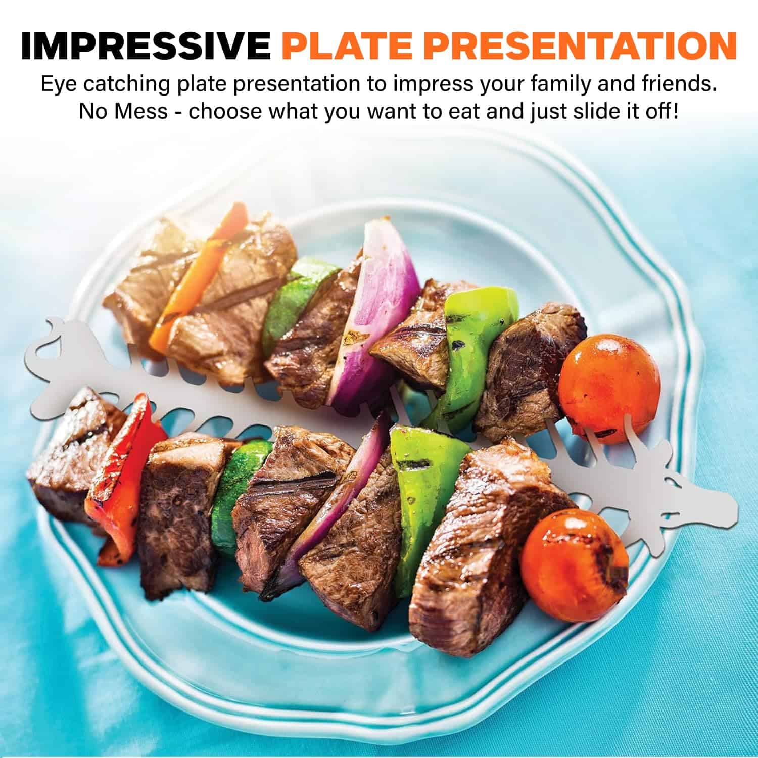 2. IMPRESIONANTE PRESENTACIÓN EN PLATO – Sirve de la parrilla al plato e impresiona a familiares y amigos. Perfecto para pinchos de camarones, pinchos de res, pinchos de pollo, pinchos de cerdo y pinchos de vegetales.