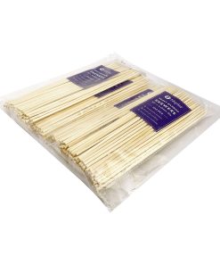 Brochetas de bambú pesadas KingSeal, palitos para barbacoa, 10 pulgadas x 3.8 mm de diámetro. Puntas afiladas para ensartar alimentos más gruesos como elote o frutas secas. Sanitizadas por vapor y calor para mayor seguridad. Prácticos paquetes al por menor de 100 brochetas, disponibles en paquetes de 2, 4 o en una caja de 25 paquetes.