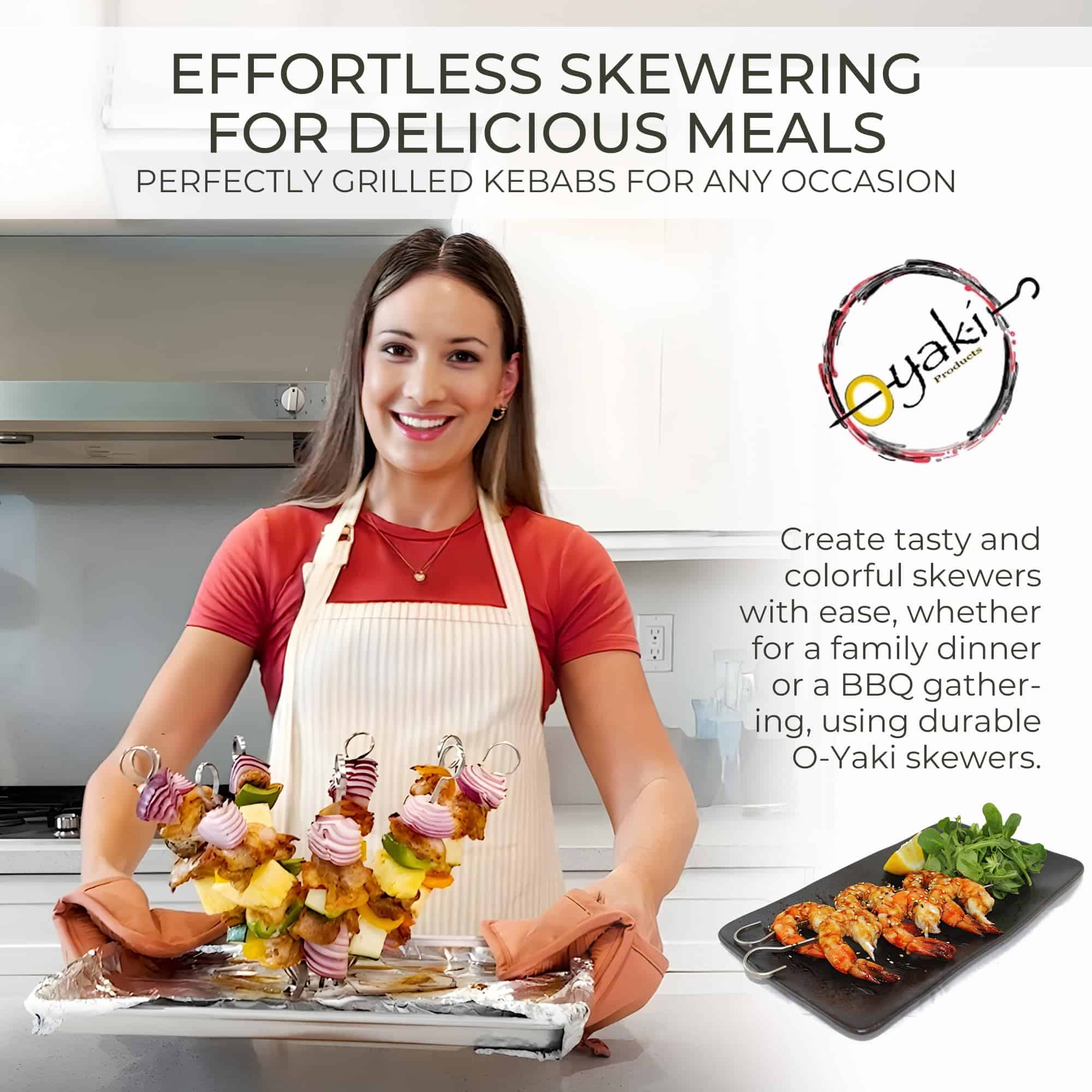 Brochetas planas de metal para barbacoa O-Yaki – Juego de 8