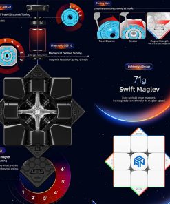 El GAN13 M MagLev UV 3×3 es el cubo de velocidad insignia más reciente. Este cubo está cargado con 88 imanes, 8 imanes centrales, 56 imanes de piezas, 12 imanes de repulsión y 12 anillos maglev, sensación magnética en 3D, y te brinda el 3×3 más asombroso jamás concebido.