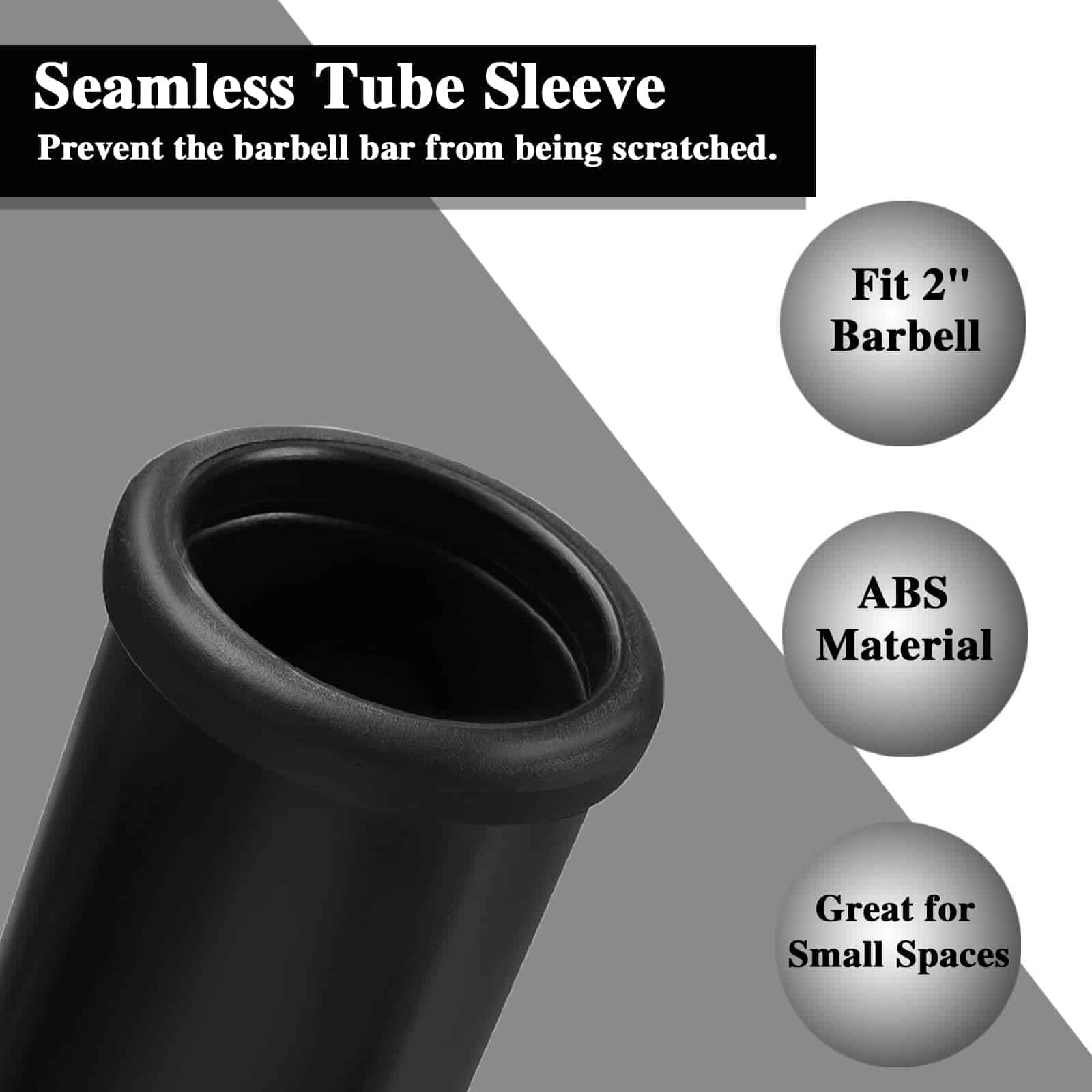3. Se ajusta a barras olímpicas de 2″ y fácil de instalar: Tubo de 8.5″ de largo para seguridad. Simplemente inserta la barra en el tubo y ajústala según necesites. Luego aprieta la perilla para un entrenamiento seguro.