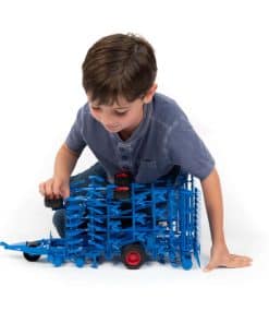 La agricultura debe adaptarse constantemente a nuevos desafíos, como la menor cantidad de lluvia y el aumento de la sequía. Para superar este desafío, el cultivador Koralin ofrece una solución versátil para el suave manejo de la tierra agrícola. Esta máquina de última generación para trabajos de campo es una nueva adición a escala 1:16 al mundo temático de la agricultura de BRUDER. Una palanca en el chasis se puede usar para cambiar del modo de transporte al modo de campo. Ambos grandes elementos laterales con ventanas detalladas con precisión y elementos de dientes se pueden plegar para su transporte. Cuando se pliegan, estos elementos junto con rodillos móviles y dientes funcionales, como en el original, muestran el impresionante tamaño de este accesorio de remolque. El BRUDER
