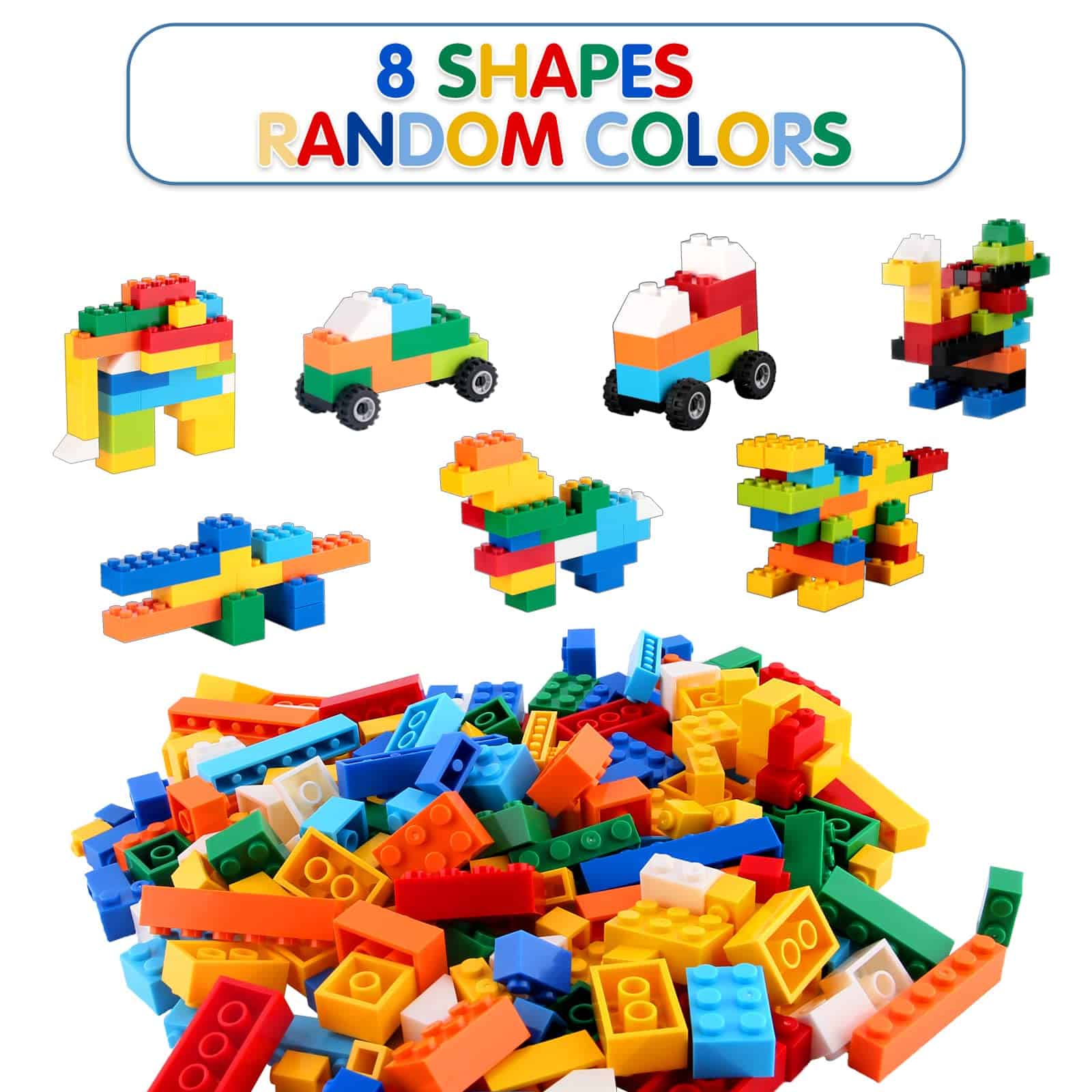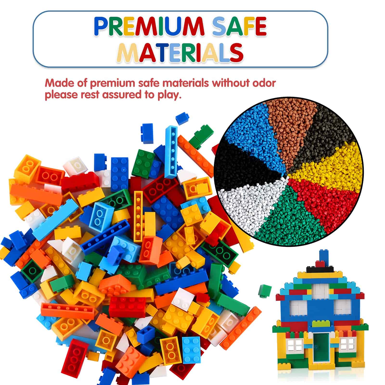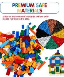 Este paquete viene con 1500 piezas de bloques de alta calidad (8 formas diferentes en colores aleatorios), 2 ventanas, 2 puertas y 2 juegos de ruedas. Además, incluye una caja de almacenamiento para un fácil almacenamiento. Esta es una opción maravillosa para complementar los bloques existentes. Juega para aprender, un gran juguete para el crecimiento de los niños. Ayuda a desarrollar las habilidades de los niños en términos de pensamiento lógico, curiosidad, imaginación, percepción y creatividad, etc. Para los niños, nunca lo tomamos a la ligera. Los bloques de construcción están hechos de materiales de alta calidad respetuosos con el medio ambiente, seguros y sin olor. Cada bloque ha sido cuidadosamente seleccionado, por favor, asegúrese de que sus hijos construyan los bloques. Los bloques de construcción tienen superficies lisas, sin rebabas, esquinas redondeadas y una moderada firmeza, los niños pueden ensamblarlos fácilmente sin lastimarse las manos.