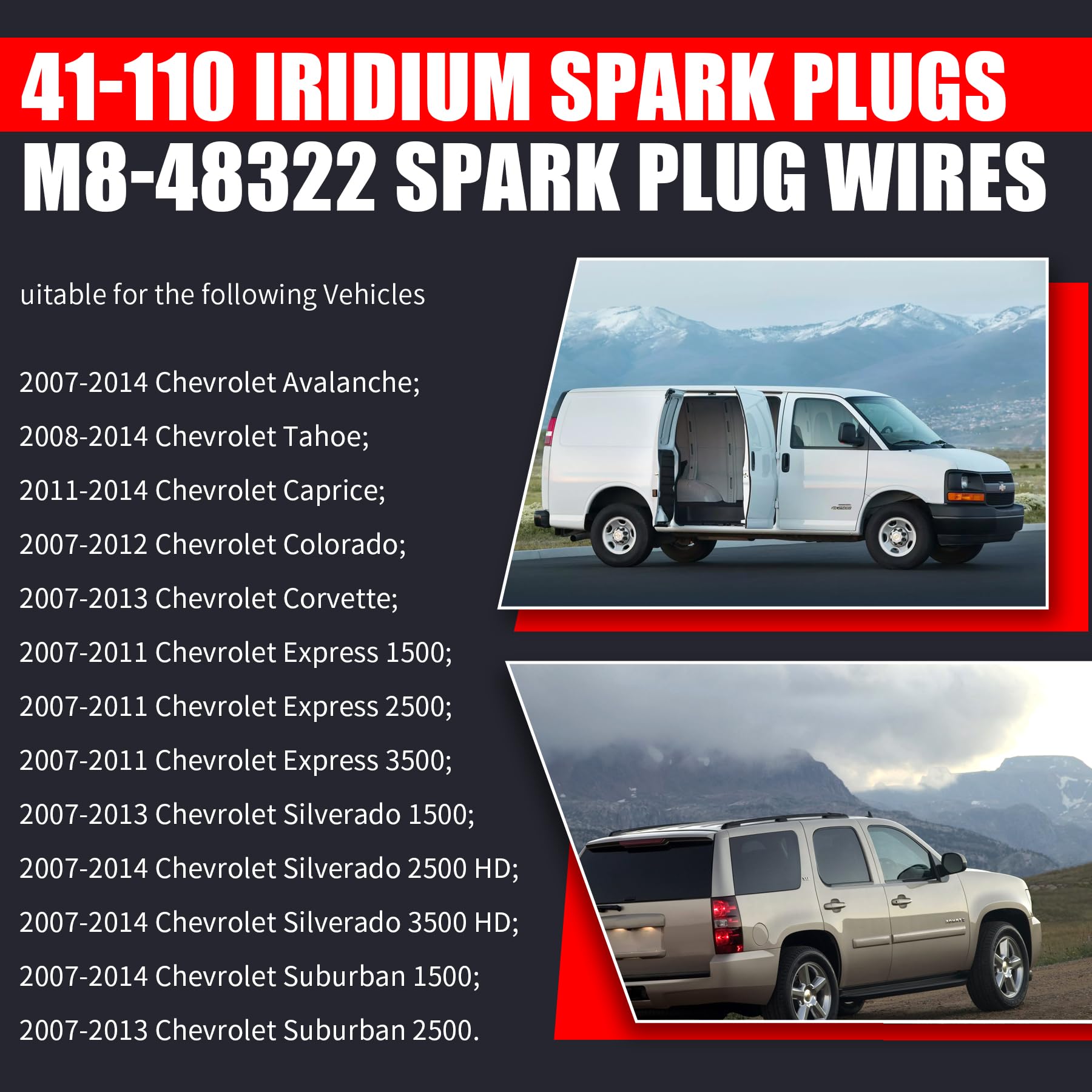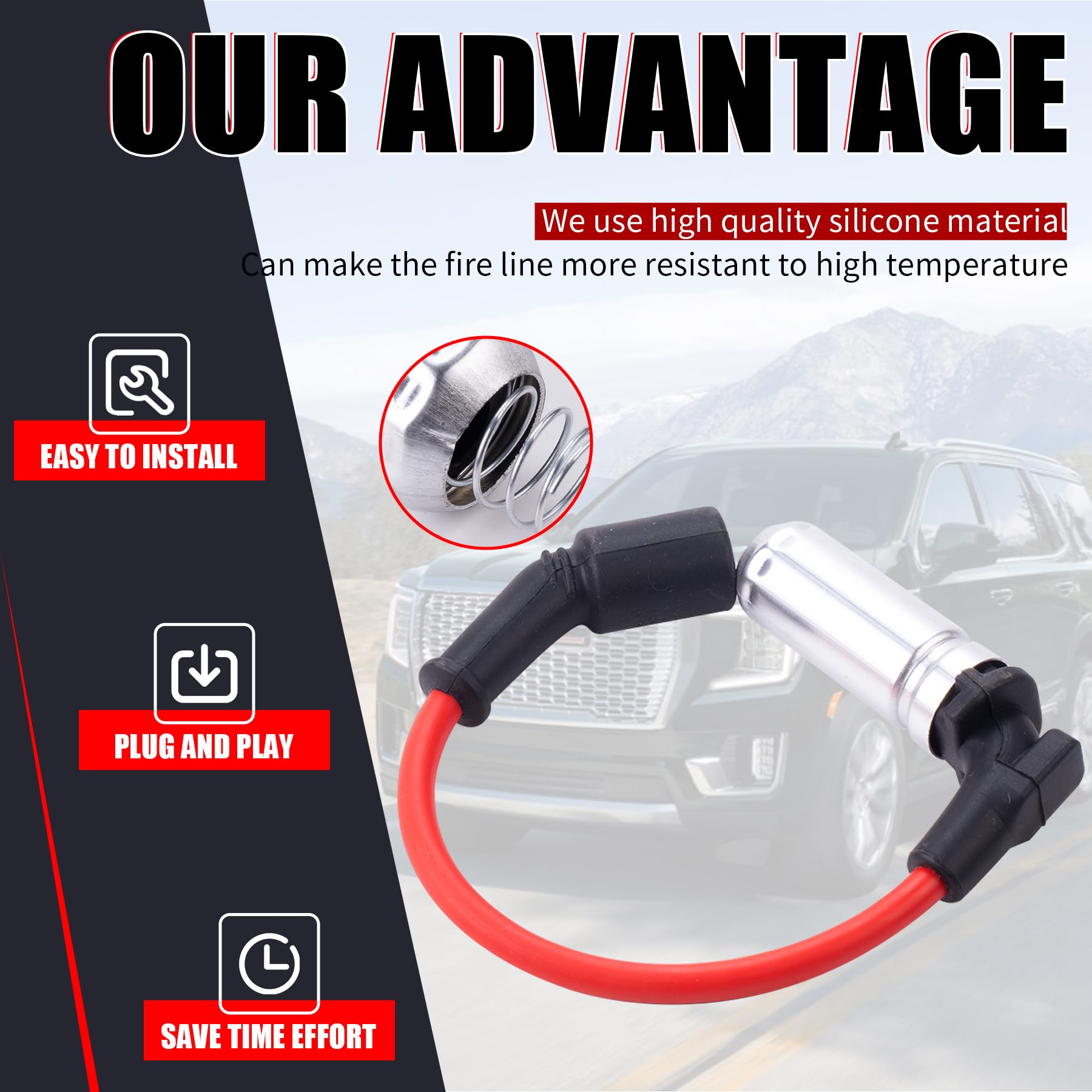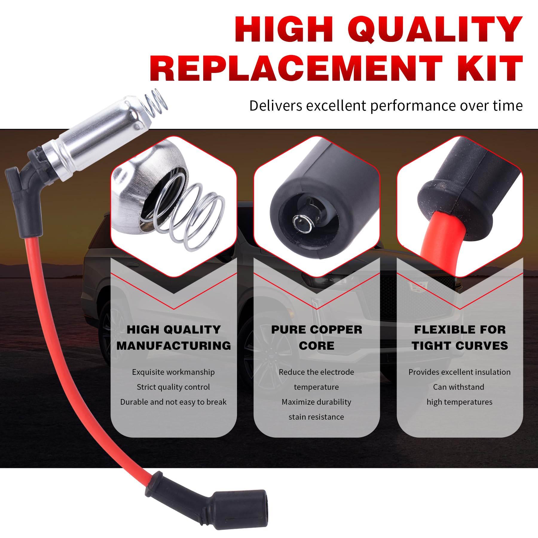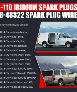 Bujías de Iridio 41110 & Cables de Encendido de Alto Rendimiento M8-48322 es un kit de reemplazo de alta calidad para vehículos Chevy GMC. Hecho con material de gel de sílice de alta calidad, resistente a altas temperaturas y fácil de instalar. Mejora el rendimiento de tu vehículo y ofrece un excelente desempeño a lo largo del tiempo. Ofrecemos un servicio profesional de postventa y soporte técnico para resolver cualquier problema o insatisfacción.