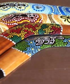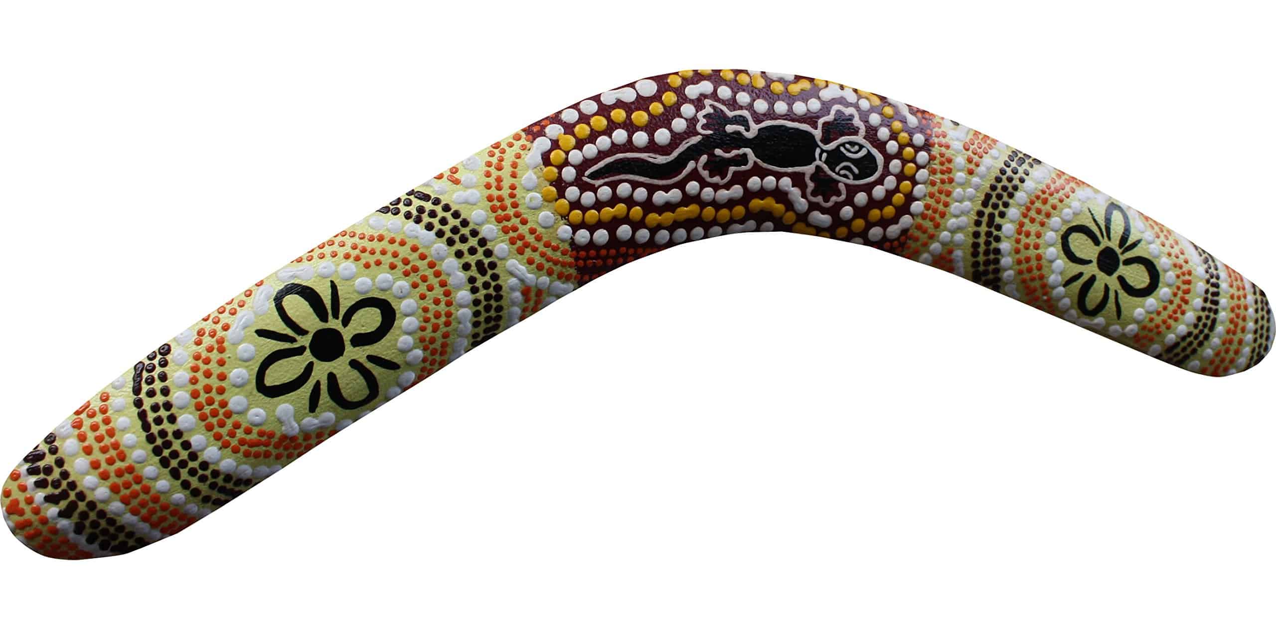 Aunque probablemente pueda ser lanzado y utilizado como un búmeran funcional, está diseñado más como una decoración artística. 15.5 pulgadas (39 cm) de lado a lado