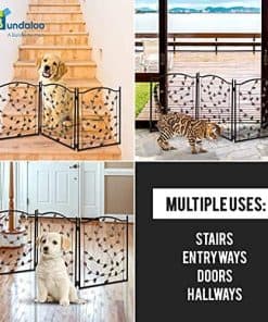 ¡Ahora puedes ser el mejor propietario de hogar y mascotas al mismo tiempo! Por mucho que ames a tus mascotas peludas, manejarlas puede ser una molestia, especialmente cuando están por ahí. Podrías terminar viendo tu prenda favorita o peor aún, tus propios muebles hechos trizas mientras no los tienes vigilados. Lo más importante es que no todas las áreas de tu hogar son seguras para ellas. No quieres que tus perros se lastimen o se metan en serios problemas si llegan a tocar tus herramientas y utensilios de cocina. ¡Convierte cualquier espacio de tu hogar en el nuevo santuario de tu mascota con la Barrera de Mascotas de Metal Rústico de Bundaloo! La Barrera de Mascotas de Metal en forma de hoja de 24 x 50 de Bundaloo cuenta con un diseño de hoja en todos sus paneles plegables que crea una forma de Z o una forma de C cuando está abierta, dependiendo de cómo desees configurarla. Nuestras puertas también tienen almohadillas antideslizantes y antiarañazos, lo que permite que la puerta se mantenga más segura. Nuestro producto puede sostenerse por sí solo sin necesidad de soporte o ensamblaje. En comparación con las convencionales puertas para mascotas disponibles, la nuestra presume un diseño único y elegante que combinará con cualquier habitación en la que se encuentren. Los patrones intrincados hacen que nuestras puertas sean ideales para un hogar moderno y sofisticado mientras siguen cumpliendo su función. ¿Todavía no estás convencido? Aquí tienes más características para ayudarte a tomar la decisión correcta: Puerta para mascotas duradera pero liviana que también es fácil de mover Adecuada para cualquier habitación, pasillos, puertas, escaleras y jardín No requiere tornillos, taladros ni instalaciones permanentes Se puede guardar de forma compacta cuando está plegada ¡Bundaloo está aquí para ti! ¡Estás respaldado por una garantía de 6 meses! ¡Crea un espacio seguro y organizado para tu familia y mascotas! ¡Agrega la Barrera de Mascotas de Metal Rústico de Bundaloo a tu carrito AHORA!