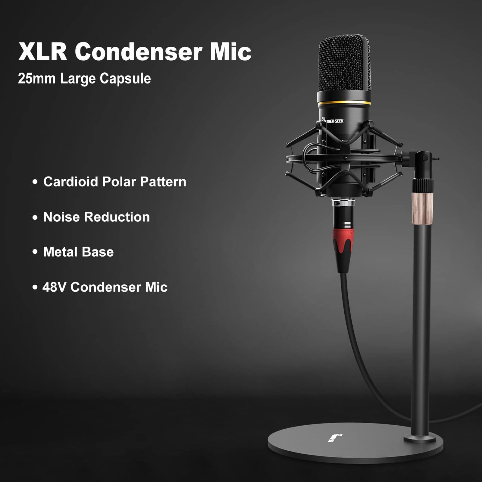 2. Conector XLR: El bundle del mezclador de audio incluye el micrófono de condensador XLR, el mezclador de streaming es compatible con la alimentación fantasma de 48V que te brinda más opciones para micrófonos. El micrófono de condensador de estudio incorpora un chip cardioide, que también tiene la función de reducción de ruido, mejorando considerablemente la calidad de audio de las grabaciones y emisiones en vivo.