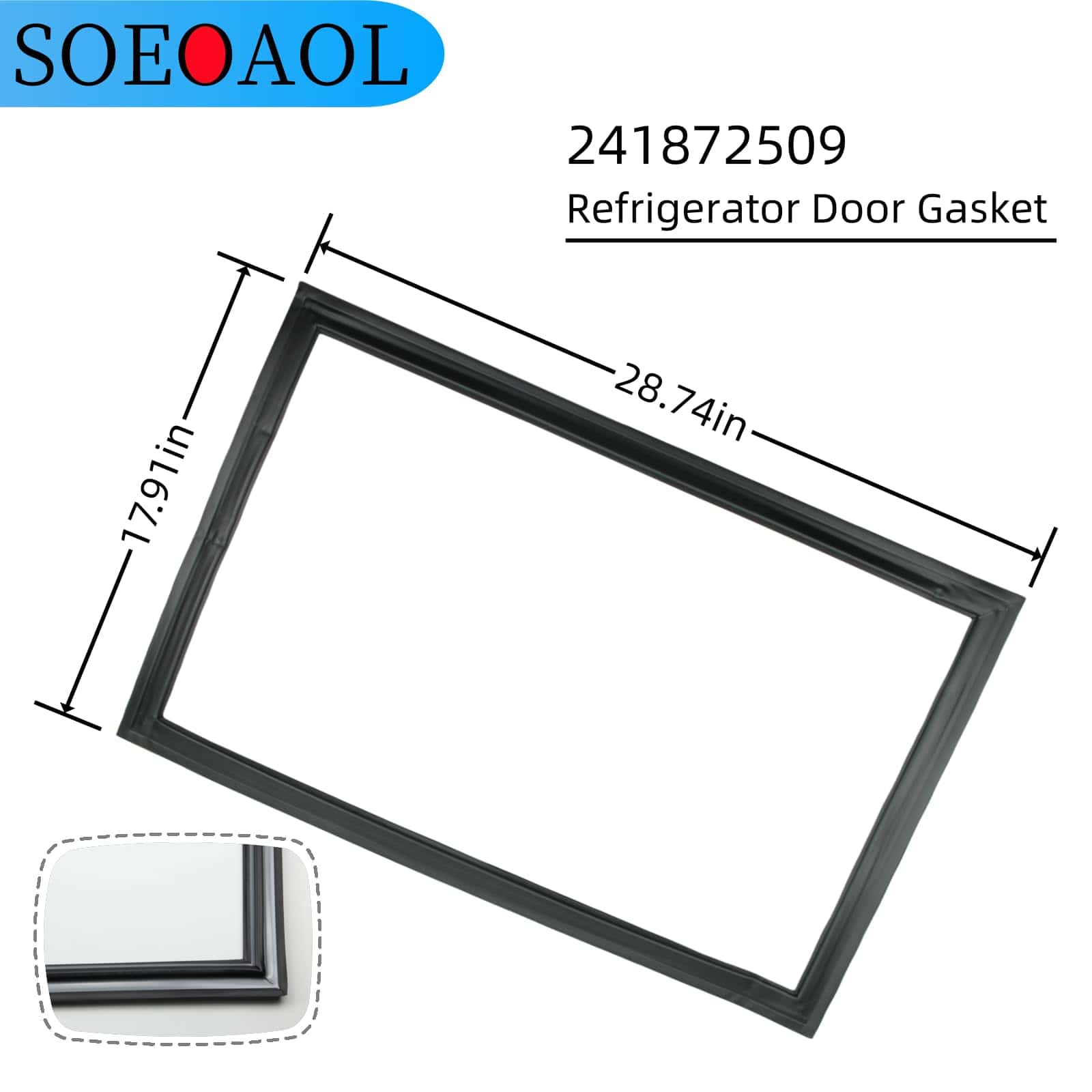 Burlete de Puerta de Refrigerador 241872509 Actualizado, compatible con refrigeradores Electrolux, Frigidaire, Gibson y Kelvinator, reemplazo de burlete de puerta de refrigerador, color Negro, con garantía de 2 años. Este burlete de puerta de refrigerador es una actualización de calidad que garantiza un sellado perfecto y duradero en su refrigerador. El material exterior de la tira de sellado es SPVC, que es resistente al desgaste, suave y más resistente a bajas temperaturas. La tira magnética interna ha sido mejorada para una mayor durabilidad y resistencia. Este kit de reparación de tira de sellado de puerta de refrigerador es compatible con una amplia gama de modelos. Reemplace el burlete de la puerta para solucionar problemas de sellado deficiente, alto consumo de energía, fluctuaciones de temperatura y escarcha interna en su refrigerador. Nuestro equipo de posventa está disponible para resolver cualquier consulta o problema que pueda tener con el producto, brindándole tranquilidad y una garantía de 2 años para su total satisfacción.