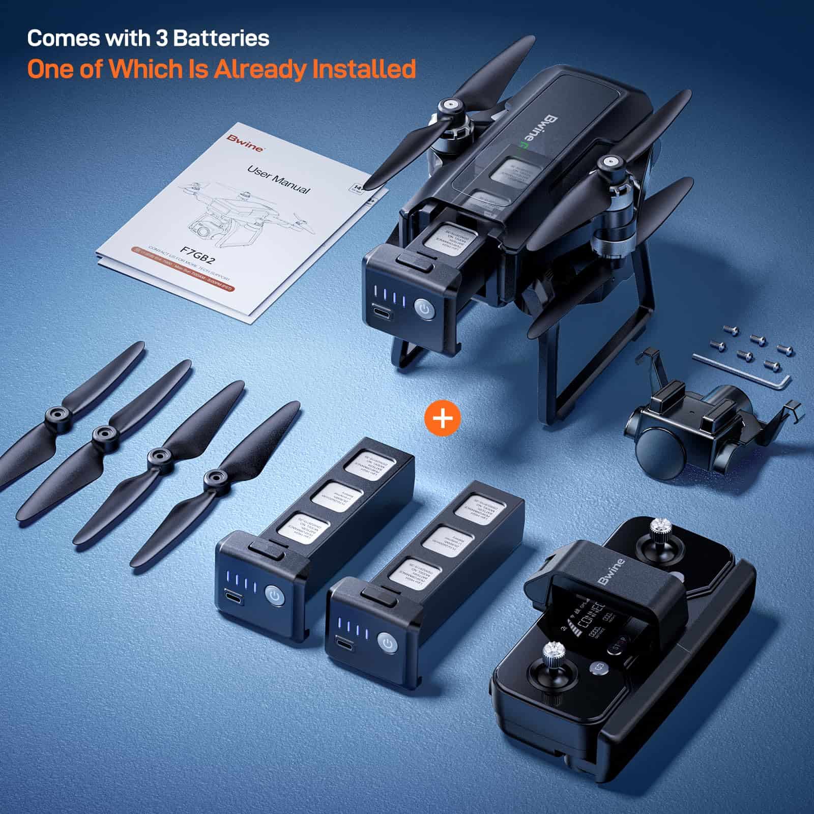 7. LO QUE RECIBIRÁS: 1 x Dron con Cámara Bwine, 3 x Baterías 11.1V 2600mAh, 1 x Carcasa de Transporte, 1 x Transmisor, 2 x Cable USB, 1 x Llave Allen, 8 x Aspas de Hélice, 12 x Tornillo. Además, ofrecemos una garantía de 12 meses para reemplazar tu artículo dañado y devolución de dinero de 30 días por cualquier motivo. Cualquier pregunta, siempre estamos aquí para ti.