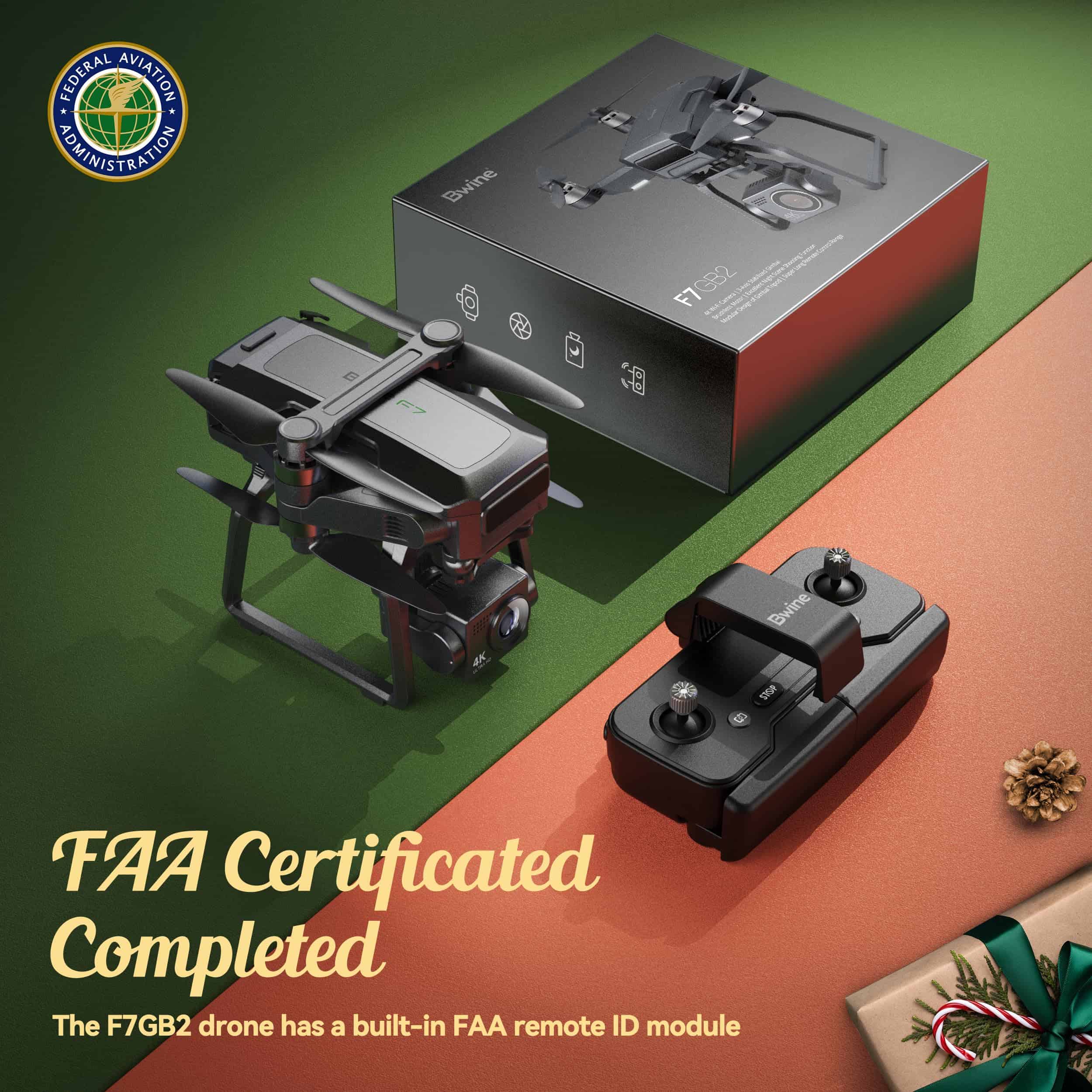 1. FAA CERTIFICADO COMPLETO: El dron Bwine ha completado la certificación de identificación remota de la FAA y cumple con la Declaración de Cumplimiento de la FAA. Obten un dron Bwine y vuela sin obstáculos. Puedes encontrar la identificación remota en el brazo del dron, incluido el código QR. Para más preguntas sobre la Identificación Remota de la FAA, por favor contáctanos a través de la información de contacto en la portada del manual o la aplicación del dron Bwine.