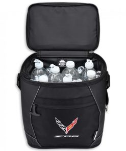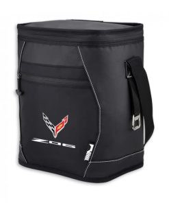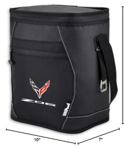 C8 Z06 Corvette Cooler Suave Impermeable para 12 latas – Negro. Nevera de carga superior impermeable para 12 latas con aislamiento de espuma y revestimiento resistente a fugas. Bolsillo frontal con cremallera, cremalleras resistentes al agua de fácil agarre, abridor de botellas de acero inoxidable asegurado con correa y correa de hombro ajustable. Bordado de las banderas cruzadas de C8 y firma de Z06 en el bolsillo frontal. Garantía limitada de 1 año. Dimensiones: 12″H x 10″W x 7″D. Color: Negro