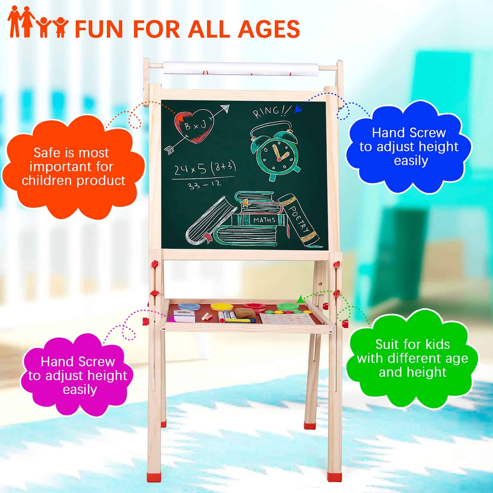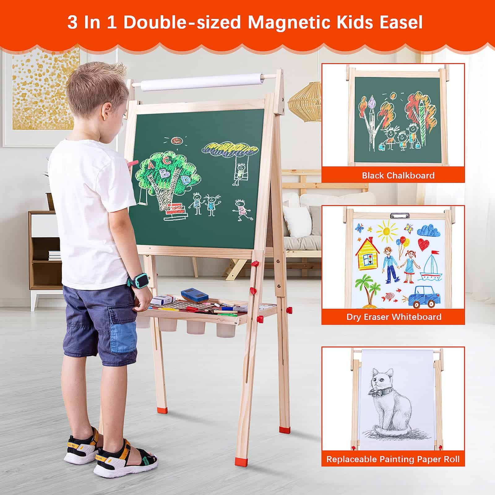 Caballete de madera para niños Ragstone con rollo de papel