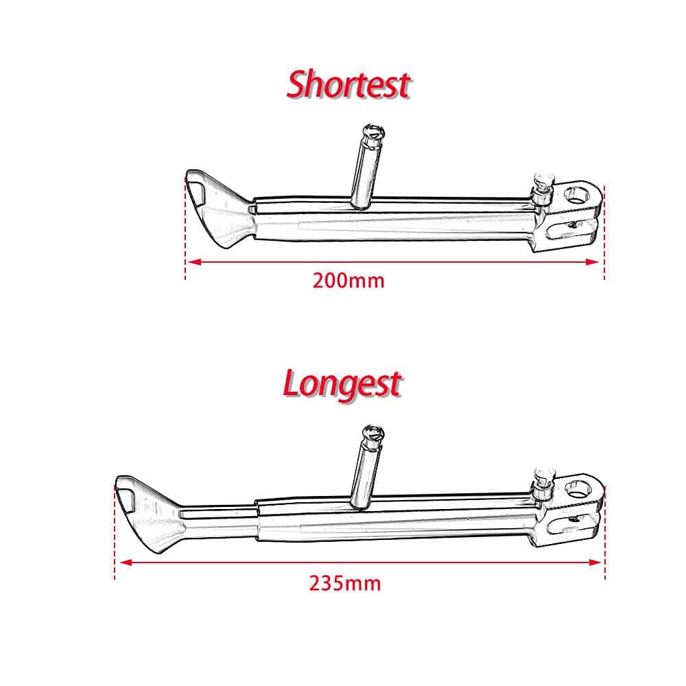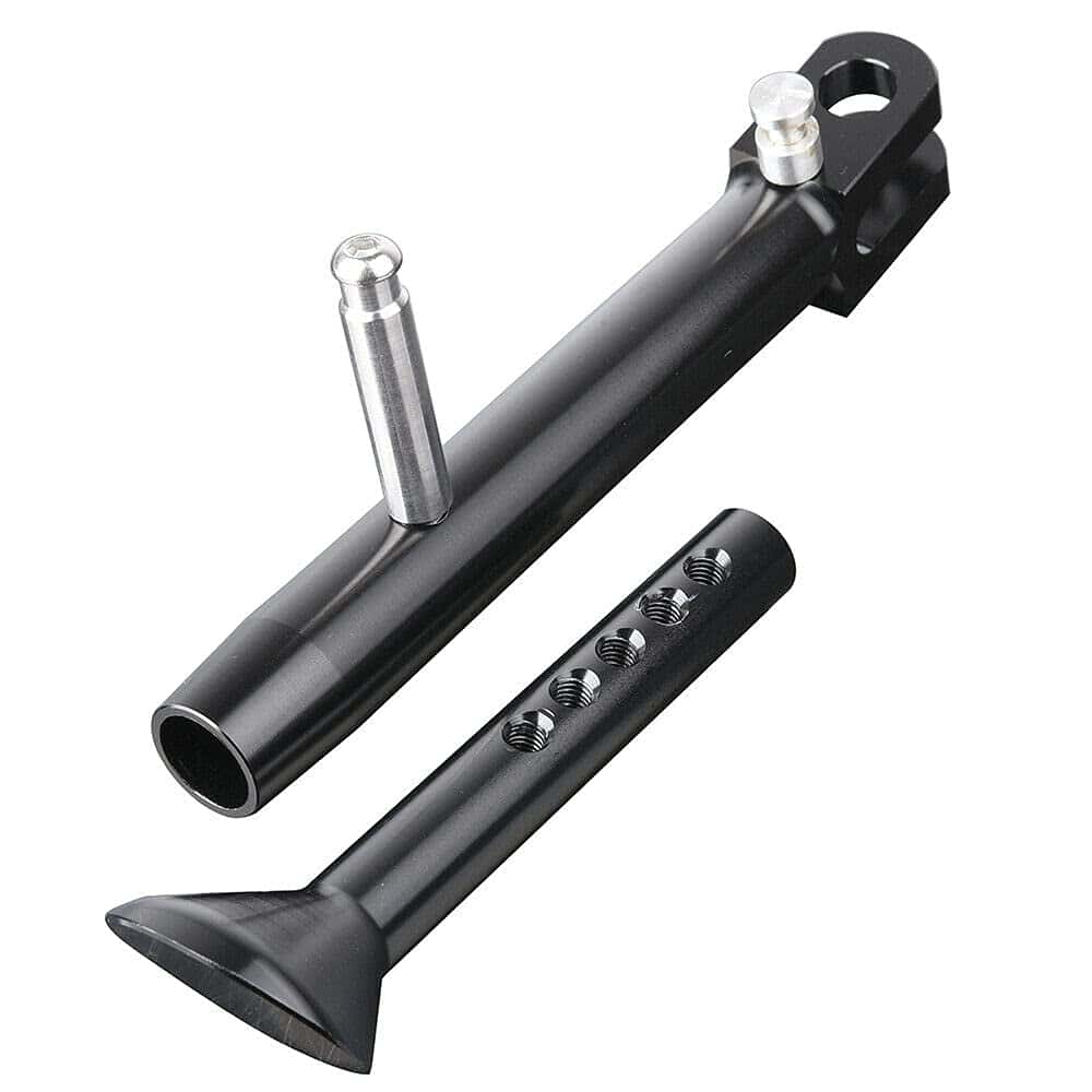 Caballete lateral ajustable de aluminio para KAWASAKI EX250 2008-2012 en color negro. Fabricado en aluminio billet anodizado de alta calidad. Ajuste perfecto para tu motocicleta. Se ajusta rápidamente a diferentes alturas para mayor comodidad. Producto nuevo y duradero para una mayor seguridad y estabilidad.