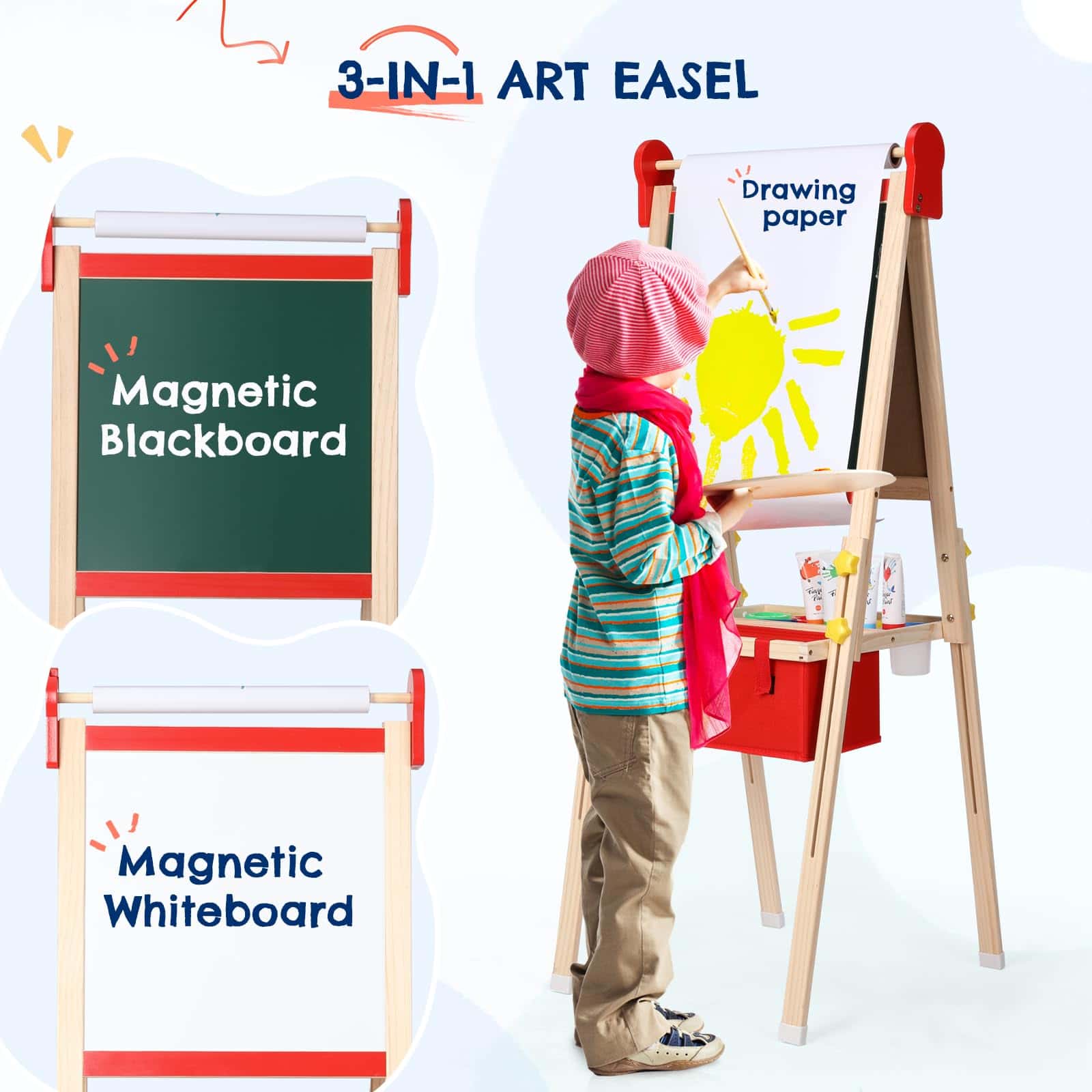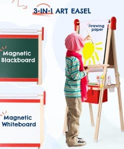 Caballete para Niños 3 en 1, Pizarra Magnética y Pizarra