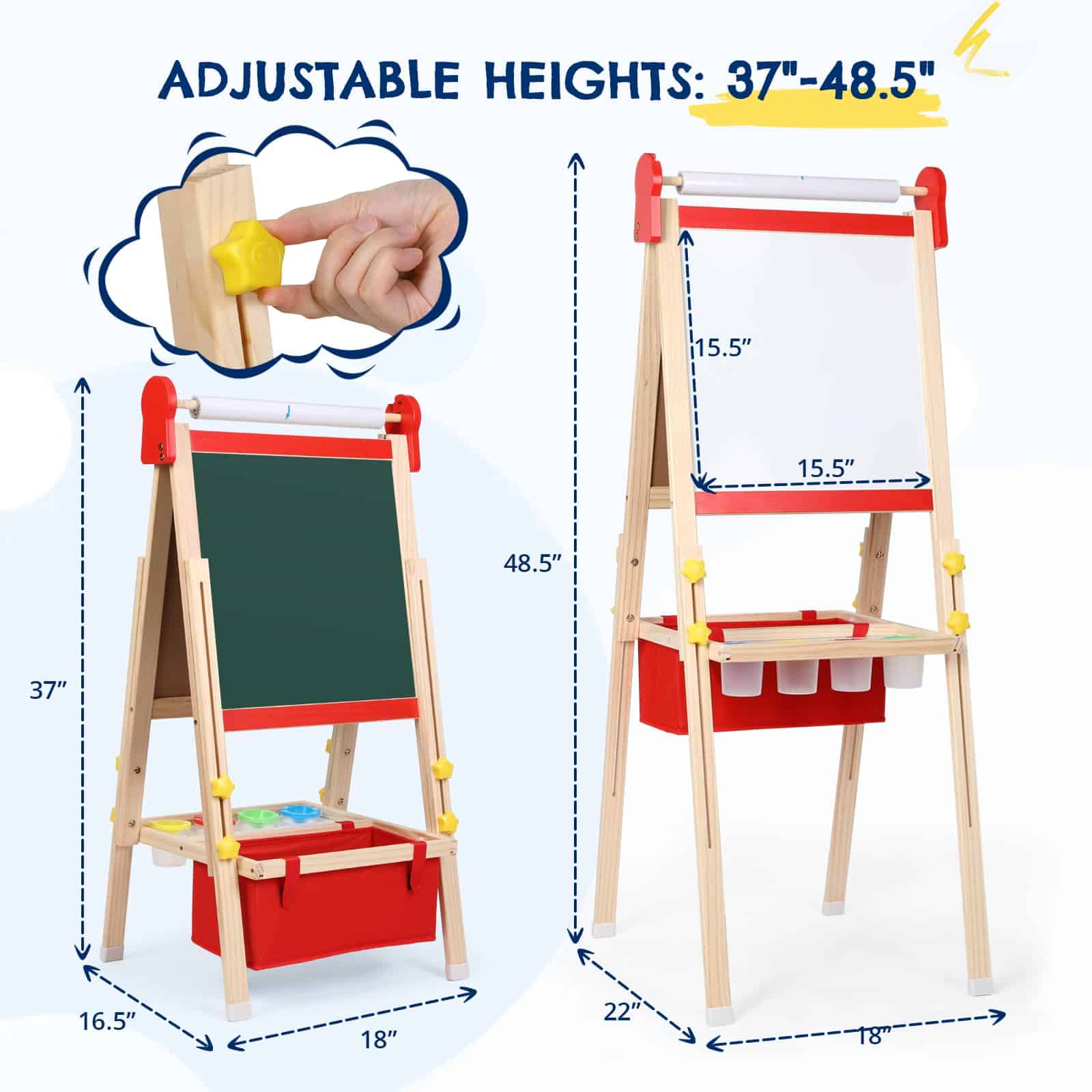6. AMPLIO RANGO DE EDADES: La altura se puede ajustar girando el botón en el lado del caballete para niños. Puede realizar la libertad de expansión y contracción. La más alta puede ser de hasta 48.5 pies, adecuada para todas las edades de niños para explorar sus propias habilidades artísticas y creativas.