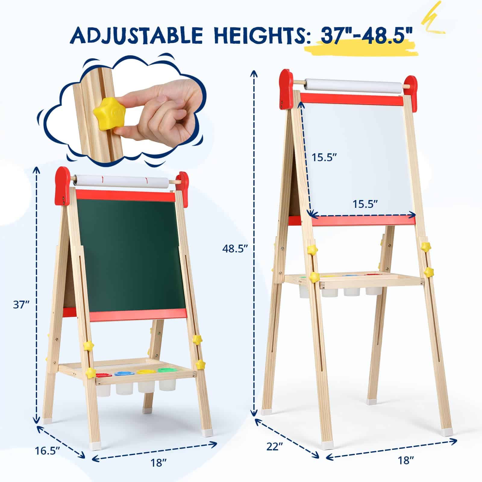7. AMPLIA GAMA DE EDADES: La altura se puede ajustar girando el botón en el lateral del caballete de niños. Puede realizar la libertad de expansión y contracción. La más alta puede ser de hasta 48.5 pies, adecuada para todas las edades de los niños para explorar sus propias habilidades artísticas y creativas.