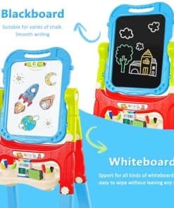 4. Caballete de Arte Doble Cara: El tablero de dibujo portátil está equipado con una pizarra magnética de borrado en seco en un lado y una pizarra en el otro. La pizarra se puede utilizar para pintura con acuarela, y la pizarra se puede utilizar para practicar estudio de caligrafía, es adecuada para pintura, colorear, dibujar, escribir letras y juegos de matemáticas.