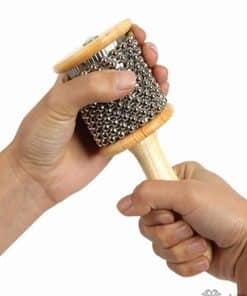 El clásico sonido de Cabasa viene sin esfuerzo de un cilindro de acero inoxidable estriado y cuentas de acero inoxidable.