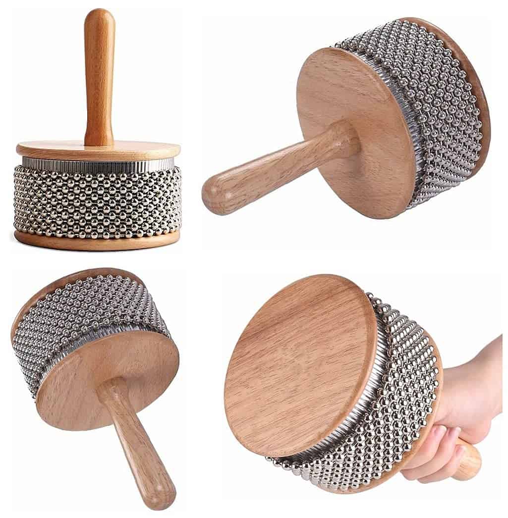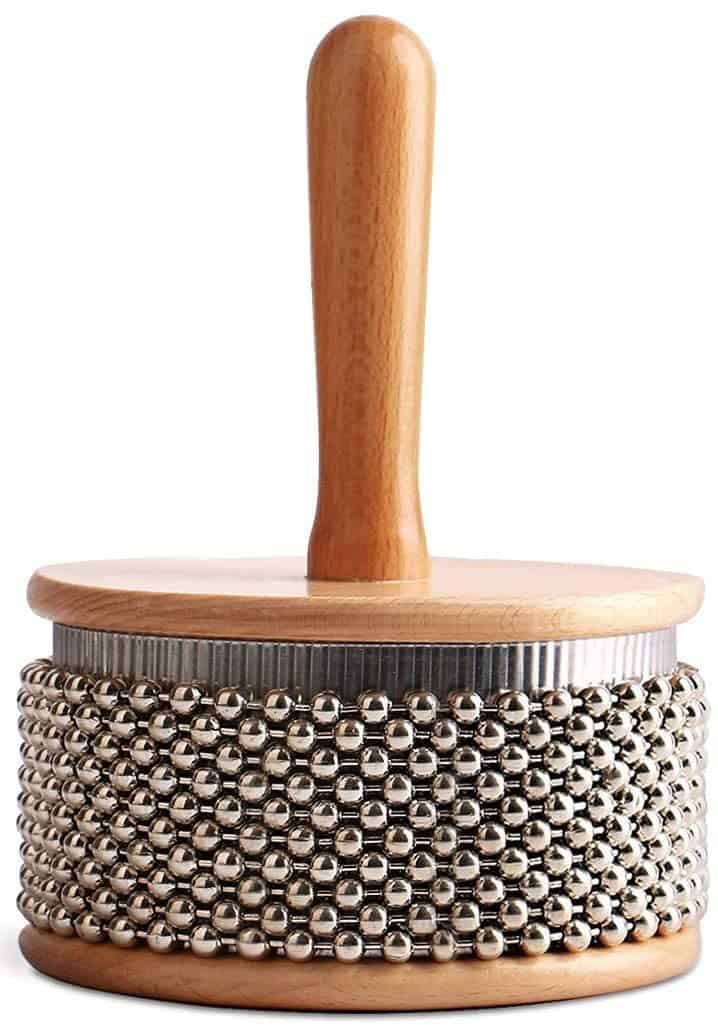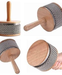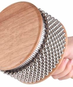 Un cabasa es un popular instrumento de percusión manual con un mango de madera delgado y un cuerpo cilíndrico cubierto de bucles de cadena de bolas de acero. Fácil de tocar, sostén el mango en tu mano dominante y agítalo en un patrón rítmico como una sonaja. Utiliza tu mano no dominante para suspender sobre las cuentas de metal, golpeando y soltando para crear ritmos más complejos. Ideal para la enseñanza musical en el aula, juegos musicales, acompañamiento de bandas musicales y mucho más. Este cabasa está hecho de materiales de alta calidad que entregan un sonido claro y potente, y está construido para durar. Gran herramienta para padres y maestros para enseñar a los niños y promover el regalo de la música.